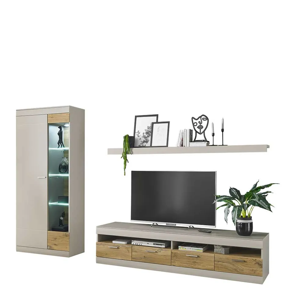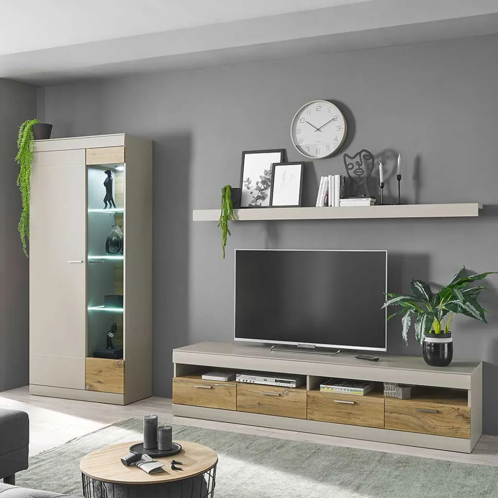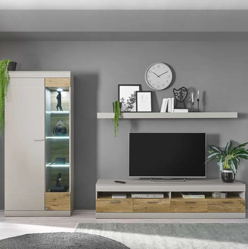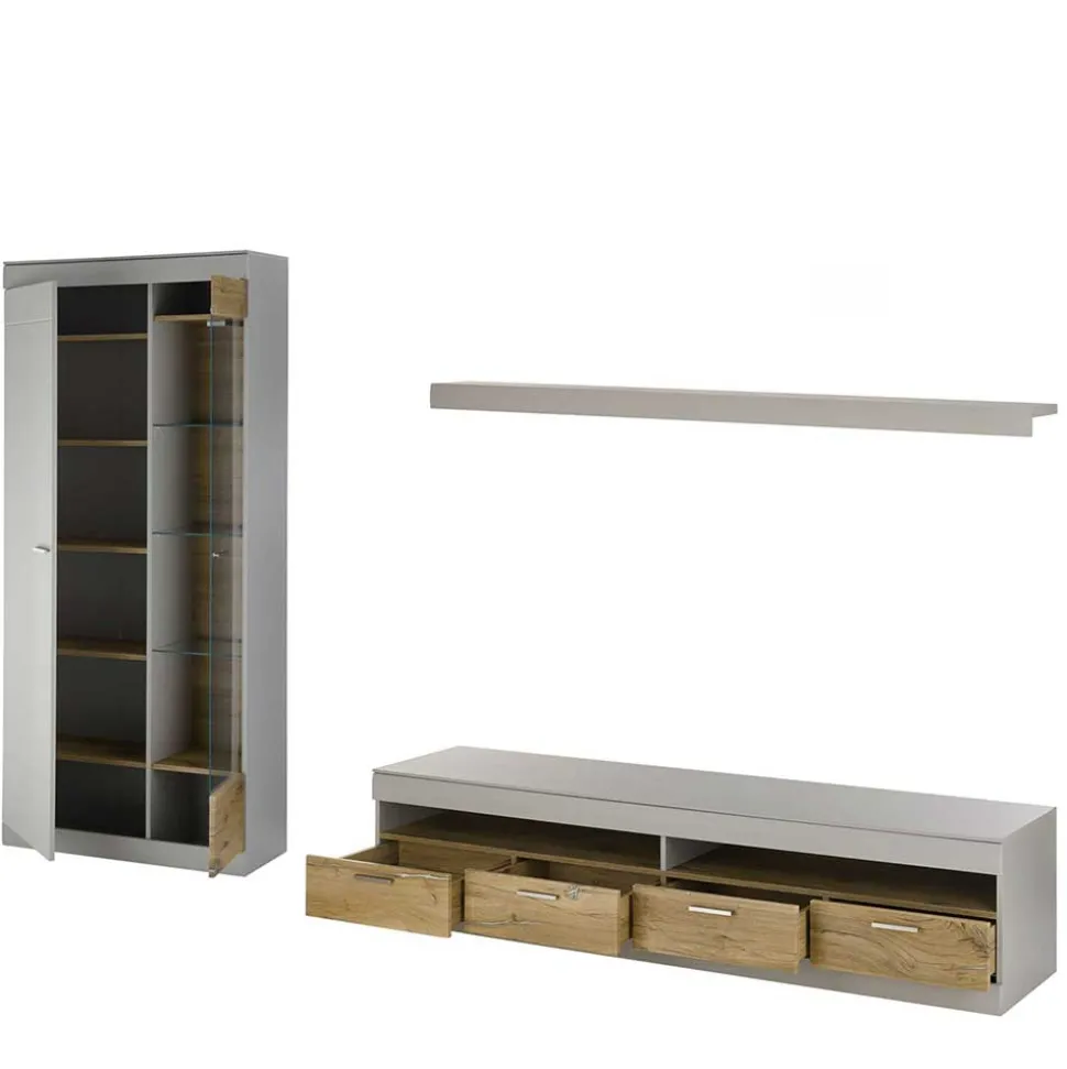 Wohnwand Kombination in Hellgrau & Zinneiche – Lioscas (dreiteilig)