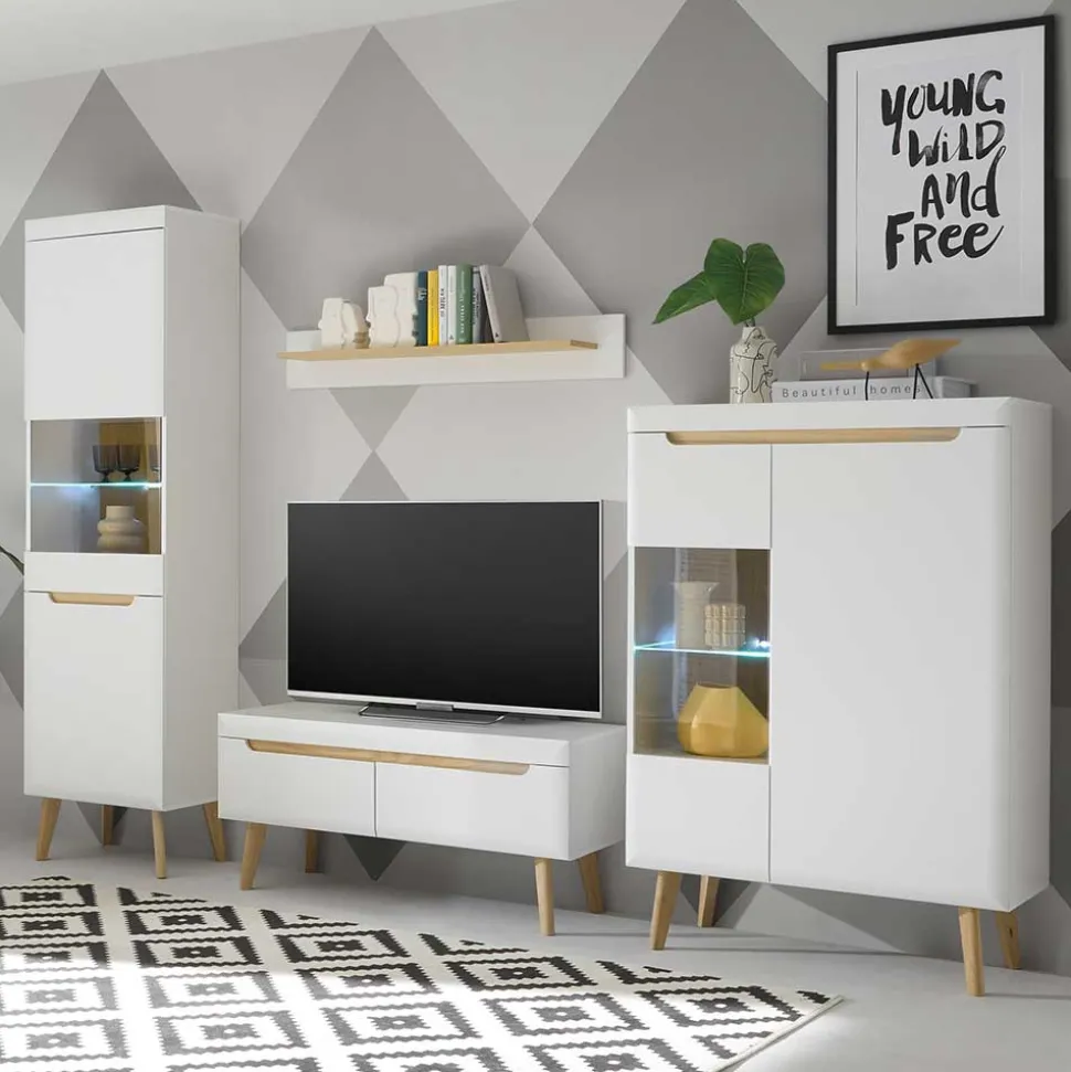 - Harmonische Wohnwand in Weiß und Eichefarben