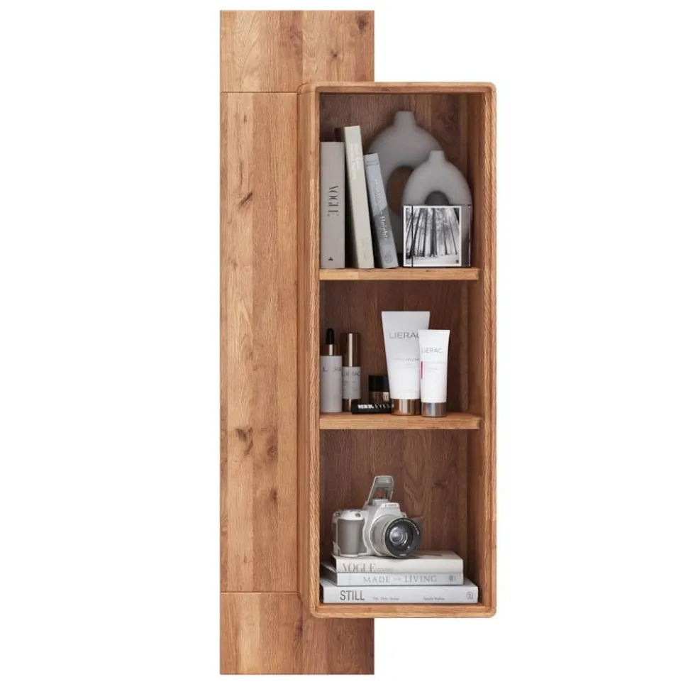 Mit einer Breite von 47 cm, einer Höhe von 120 cm und einer Tiefe von 32 cm bietet dieses Regal drei großzügige Fächer für Bücher, Dekoration oder Alltagsgegenstände. Die gesofteten Kanten schaffen eine harmonische Formensprache, die Ruhe ausstrahlt und sich mühelos in moderne wie klassische Einrichtungen einfügt. Der Clou: Die wechselseitige Montagemöglichkeit erlaubt flexible Gestaltung ganz nach Ihrem Raumkonzept.