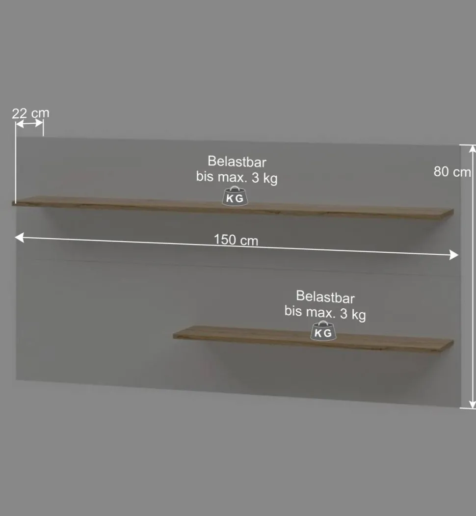 - Zwei Ablageböden mit einer Tiefe von 18 cm, Breite: 140 und 85 cm