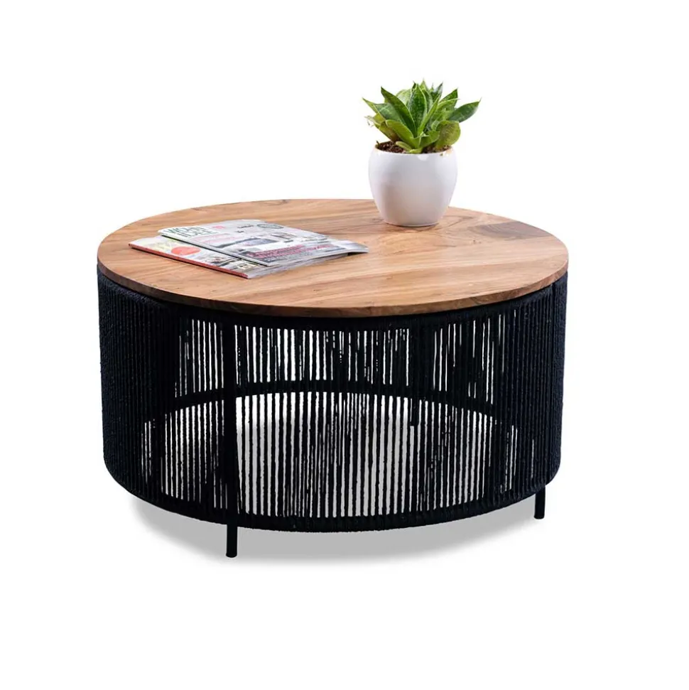 Der Wohnzimmertisch „Boom“ setzt mit seinem spannenden Materialmix aus schwarzem Metall, natürlichem Akazienholz und feiner Baumwollkordel ein kraftvolles Statement in Ihrem Wohnbereich. Die Kombination aus warmen Holztönen und schwarzem Gestell verleiht dem Tisch einen modernen, markanten Look, der sowohl in minimalistischen als auch in gemütlich eingerichteten Wohnzimmern perfekt zur Geltung kommt. Er verbindet Funktionalität mit stilvoller Präsenz und lädt dazu ein, den Lebensmittelpunkt des Wohnzimmers stilvoll zu gestalten.