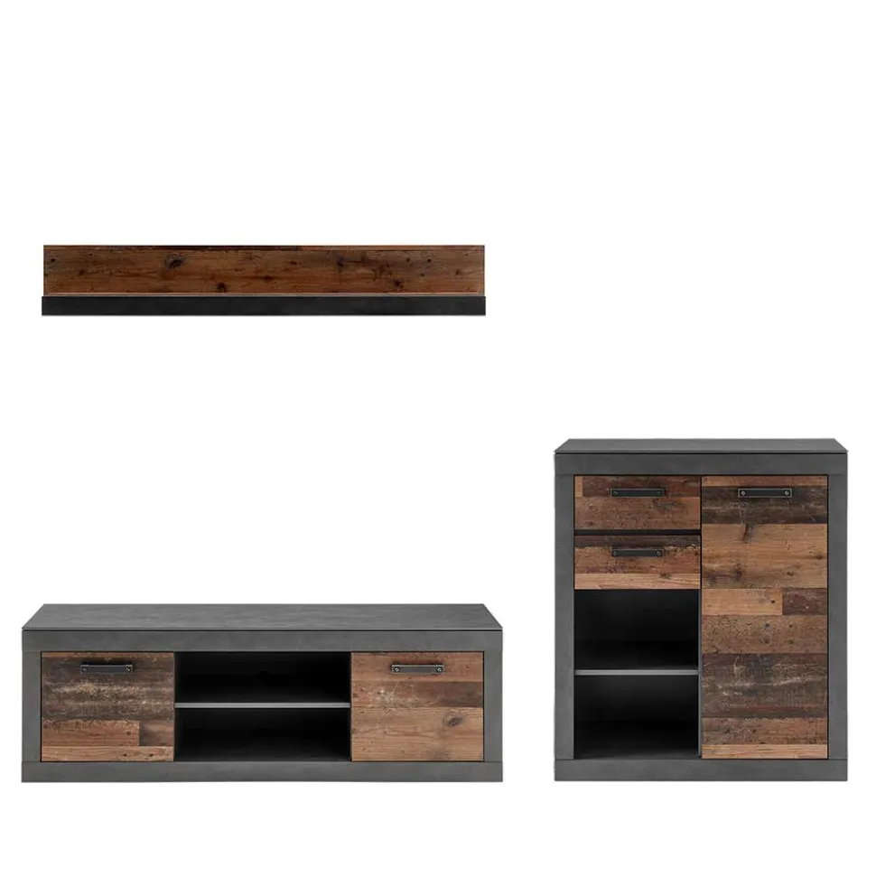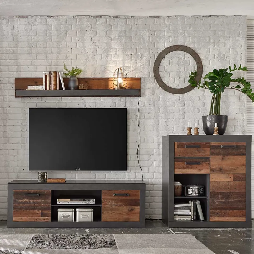 - Großartige Wohnwand in Dunkelgrau und Altholz Optik