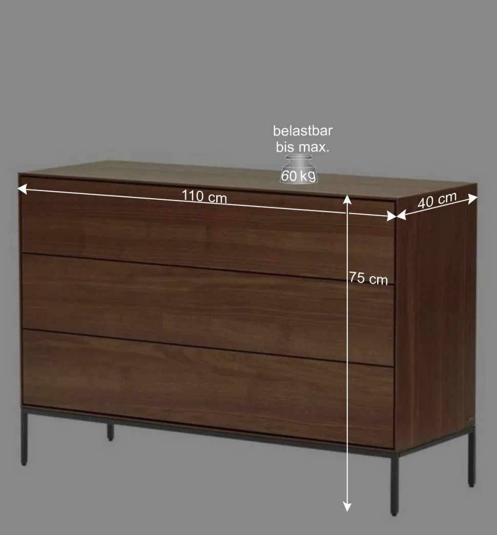 - Puristische Kommode in Nussbaumfarben und Anthrazit