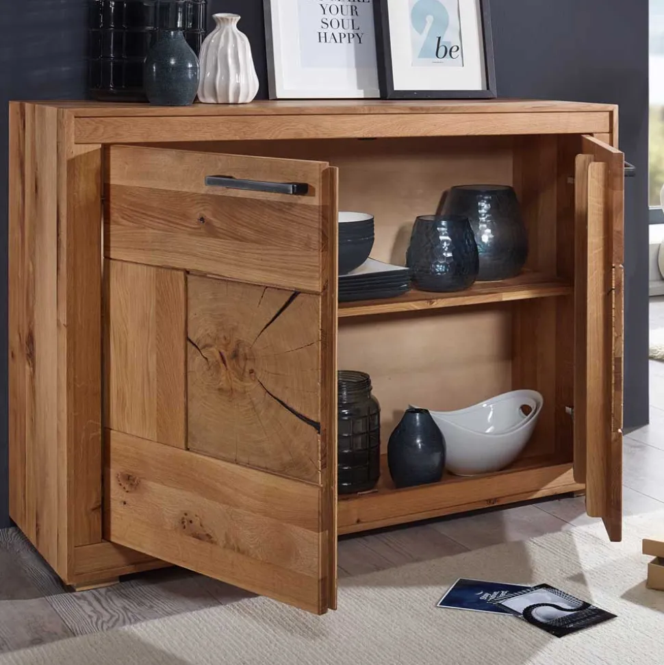 Das edle Sideboard Troncon ist ein echtes Schmuckstück für jedes Zuhause. Es wurde aus massivem Wildeiche Holz gefertigt und verfügt über einen stabilen Stand. Die zwei Türen sind mit Soft-Close Beschlägen ausgestattet und die flachen Holzfüße verleihen dem Sideboard eine moderne Note.