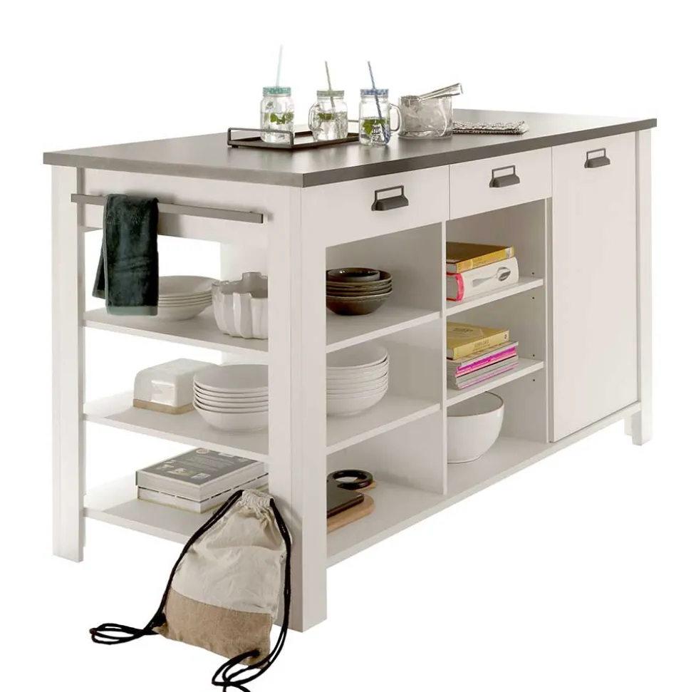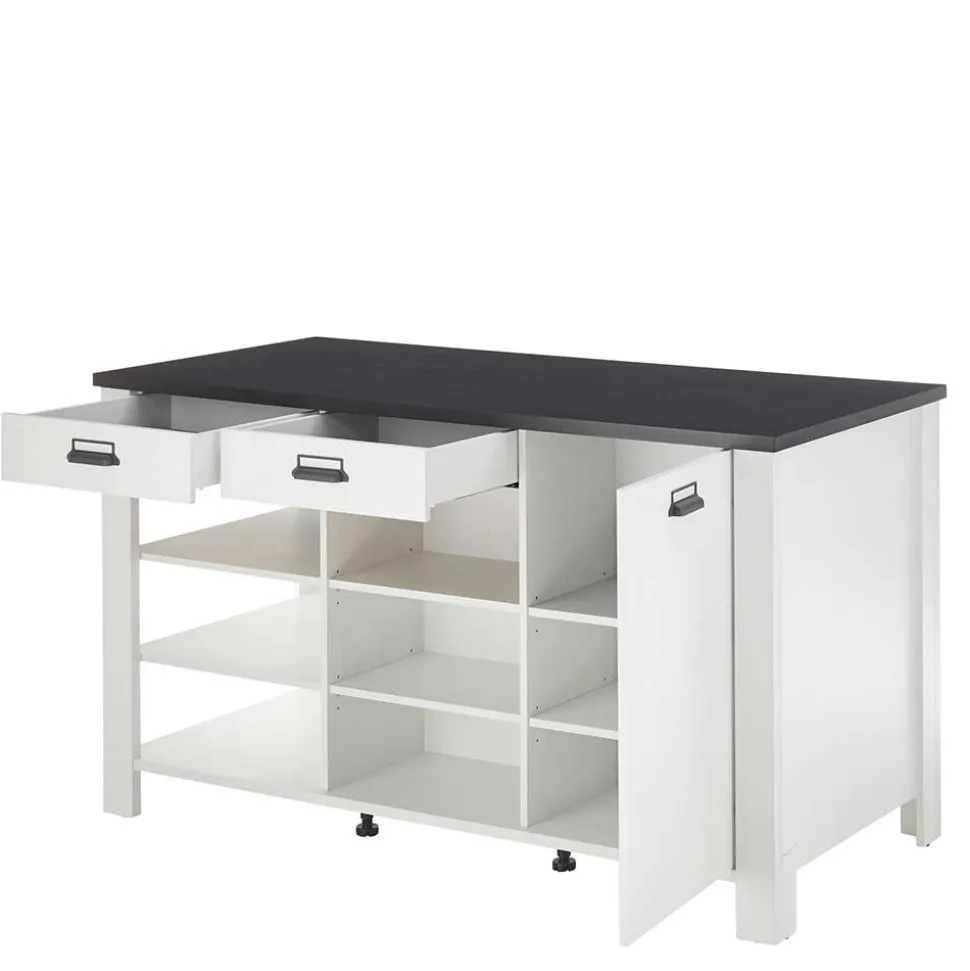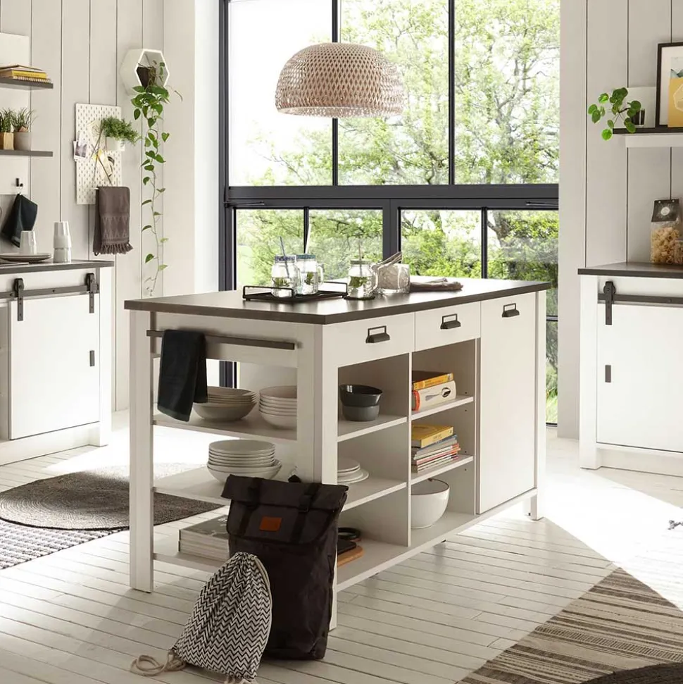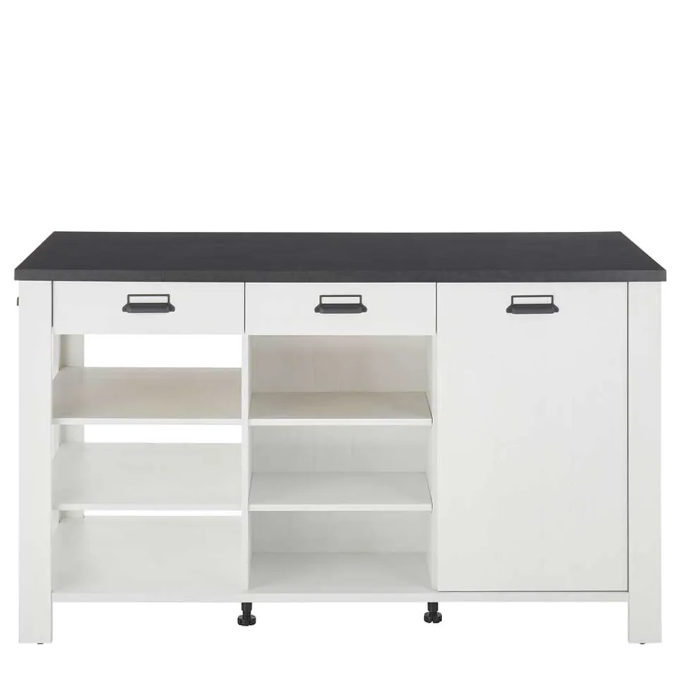 Die Kücheninsel „Eture“ präsentiert sich als Meisterwerk in Weiß und Anthrazit, ein elegantes Zusammenspiel, das zeitlose Eleganz in Ihre Küche bringt. Hergestellt aus robustem Holzwerkstoff, garantiert sie Langlebigkeit und Stabilität, während ihre Oberflächen in Anthrazit und Holzoptik Pinie Weiß melaminbeschichtet sind, um eine pflegeleichte Reinigung zu ermöglichen. Diese hochwertige Verarbeitung vereint Schönheit mit Funktionalität auf höchstem Niveau.