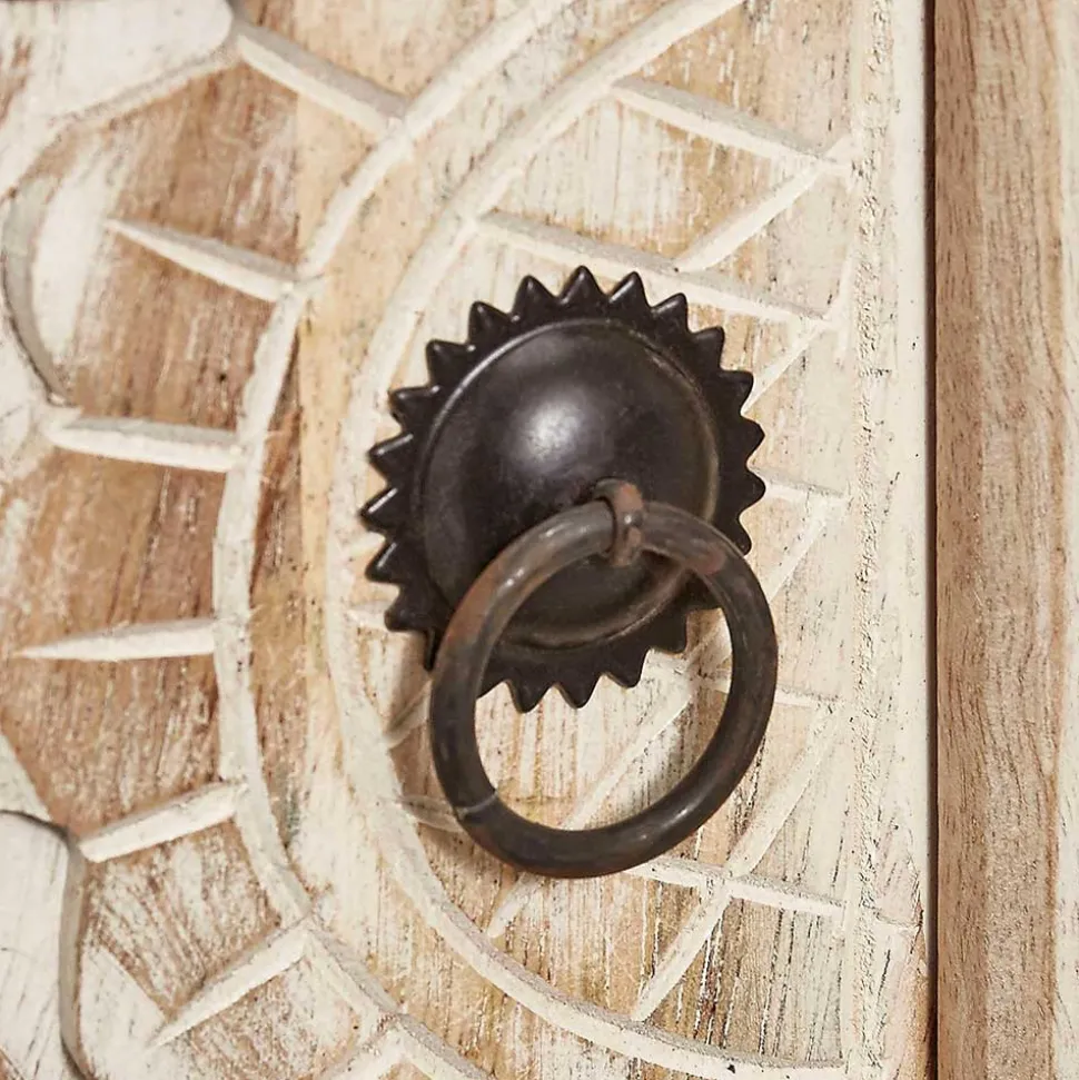 - Oberfläche dekorativ beschnitzt und mit White-Wash-Effekt behandelt