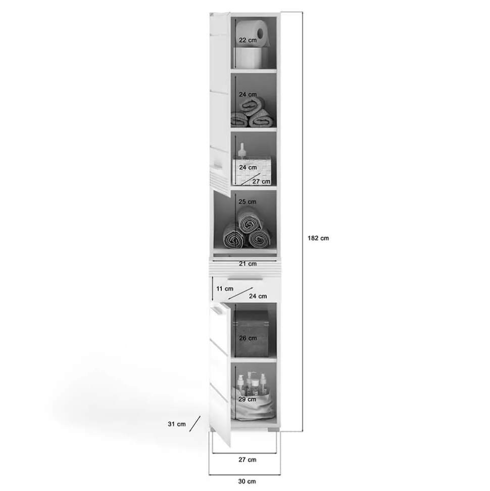 - 30 cm Breit, 182 cm Hoch, 31 cm Tief