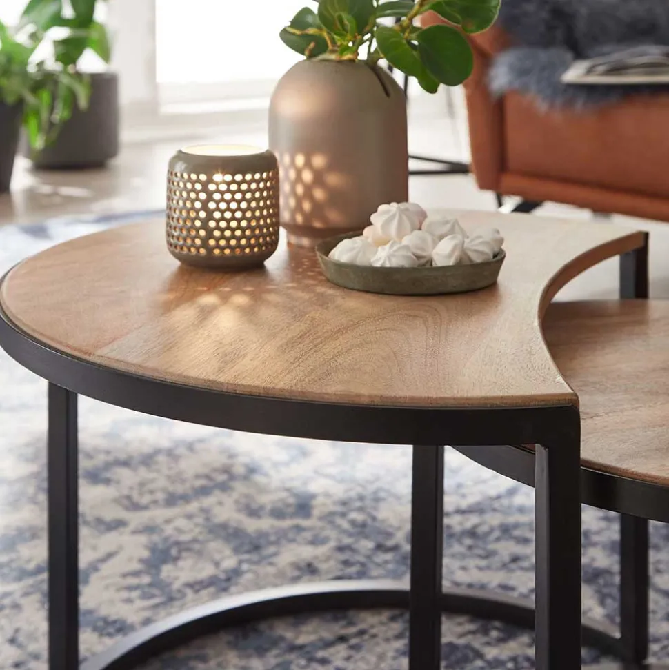 - Trendstarke Beistelltische in Mangoholz Naturfarben und Schwarz