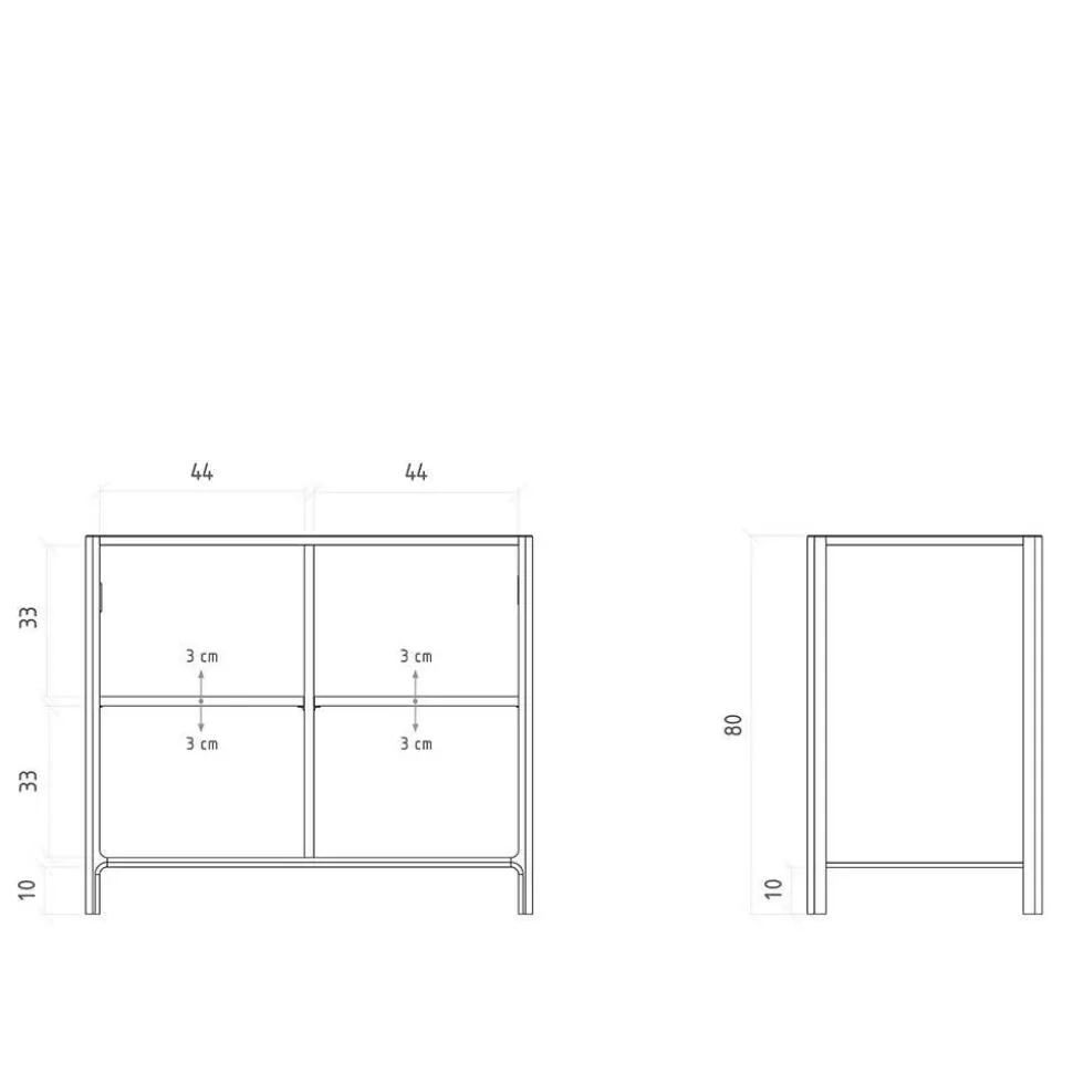 Hinter den beiden Drehtüren mit Soft-Close-Funktion verbirgt sich ein großzügiger Stauraum, der mit zwei verstellbaren Einlegeböden individuell angepasst werden kann. Die Soft-Close-Technologie sorgt dafür, dass die Türen sanft und geräuschlos schließen – ein kleines Detail mit großem Komfort, das nicht nur die Lebensdauer der Kommode verlängert, sondern auch für eine angenehme Nutzung im Alltag sorgt. Die ausgefrästen Grifflöcher ermöglichen ein müheloses, griffloses Öffnen der Türen und unterstreichen das moderne Design.
