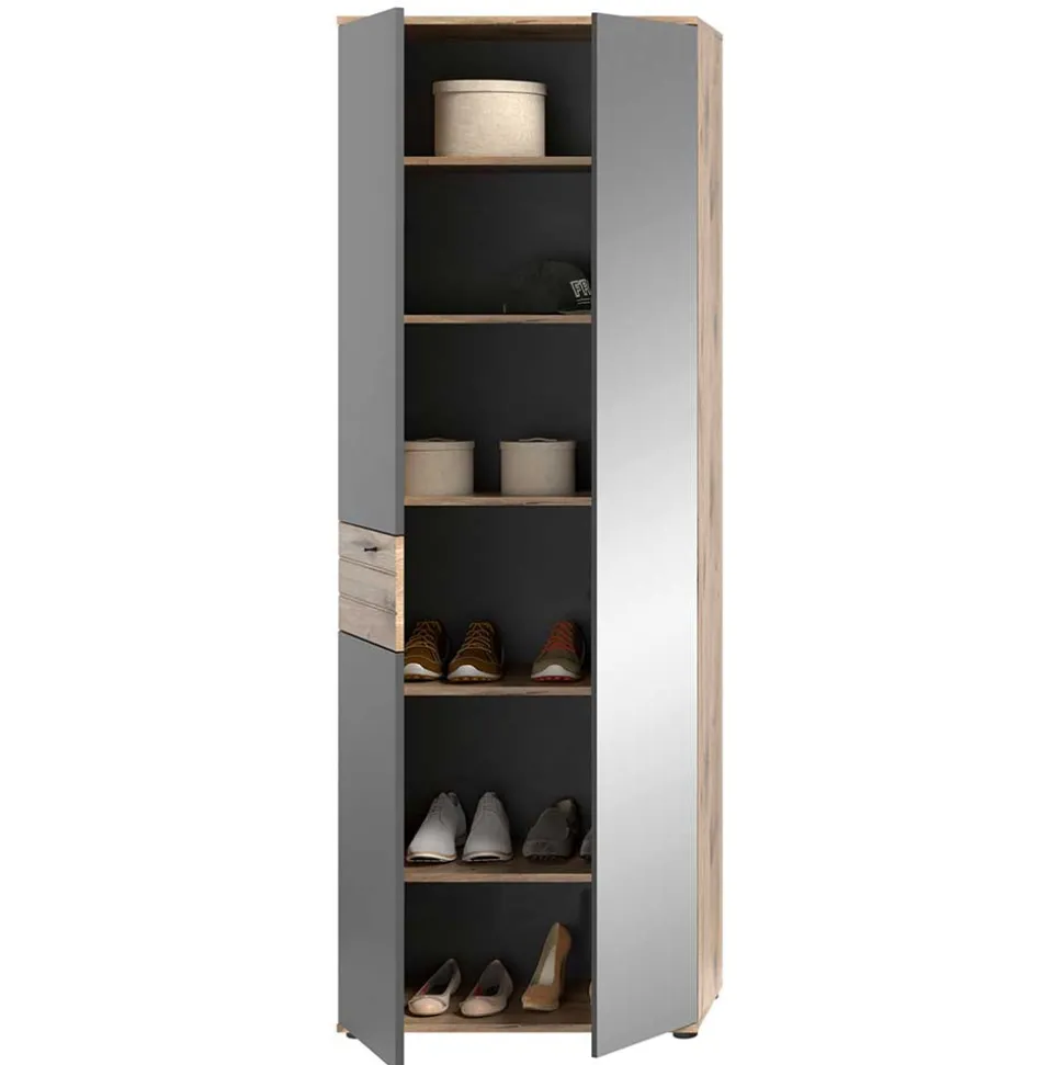 - Angesagter Garderobenschrank in Wildeichefarben und Grau