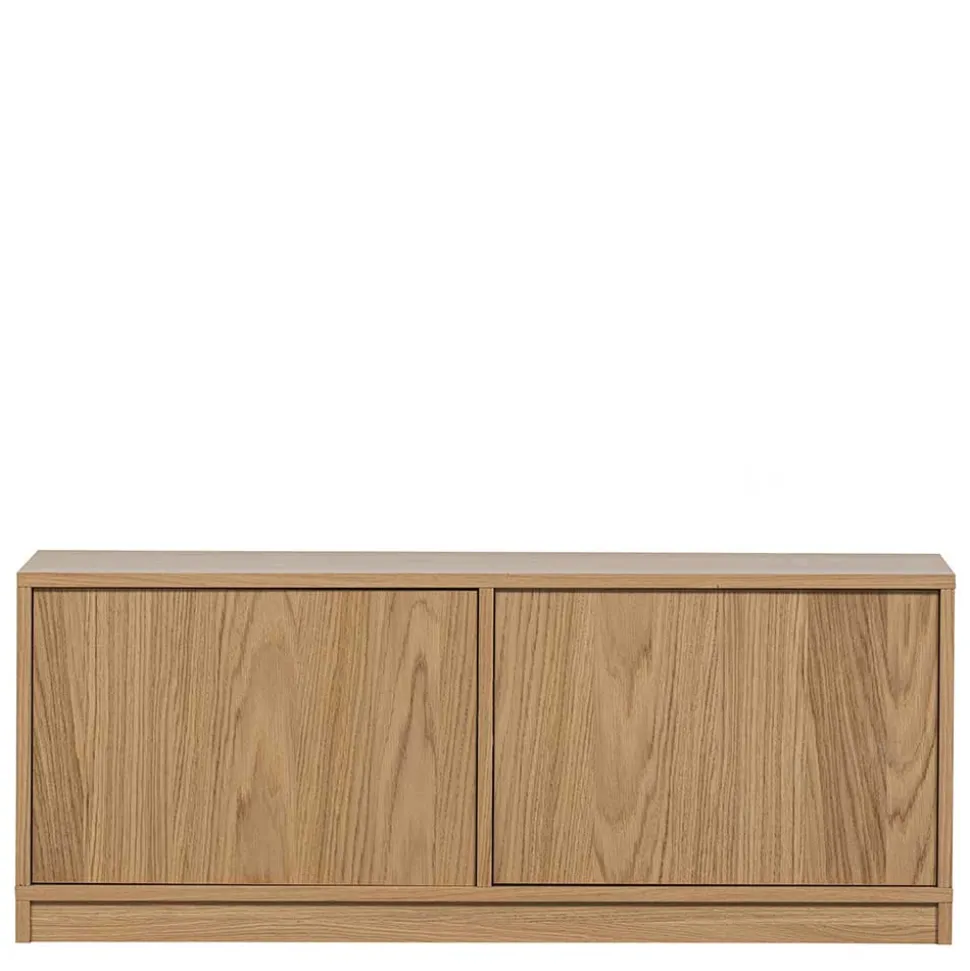 Die grifflosen Türen mit eleganter Push-to-open Funktion öffnen sich ganz leicht auf leichten Druck – ein angenehmes Detail, das für modernen Bedienkomfort sorgt. Dahinter befinden sich zwei stabile Einlegeböden, jeweils bis zu 15 kg belastbar – perfekt für Receiver, Spielekonsole, Filme oder andere Alltagsgegenstände. Alles findet seinen Platz, ohne dass das Board überladen wirkt. Die geschlossene Front sorgt zudem für ein ruhiges, harmonisches Gesamtbild.