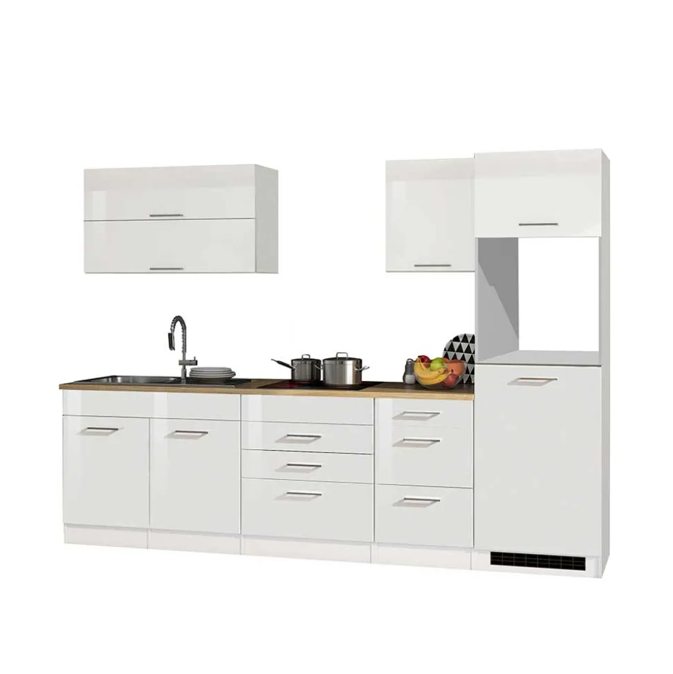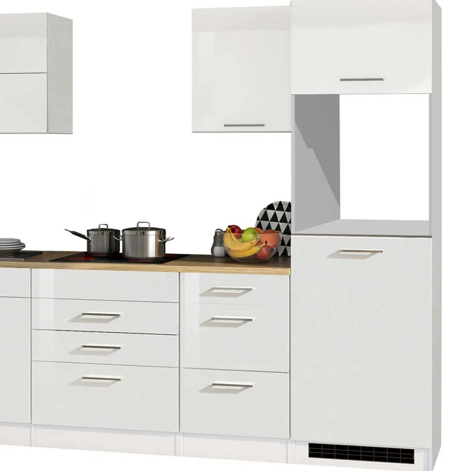MDF, das Material der Fronten, ist bekannt für seine hohe Formstabilität und Beständigkeit. Diese mitteldichte Faserplatte (MDF) bietet eine glatte und homogene Oberfläche, die perfekt für die Verarbeitung mit Hochglanzfolien geeignet ist. Der Vorteil der Hochglanzfolierung liegt nicht nur in der edlen Optik, sondern auch in der pflegeleichten Handhabung. Die glänzenden Fronten reflektieren das Licht und verleihen Ihrer Küche eine moderne, helle Ausstrahlung. Zudem schützt die Folierung zuverlässig vor Feuchtigkeit und erleichtert die Reinigung – ideal für den intensiven Küchenalltag.