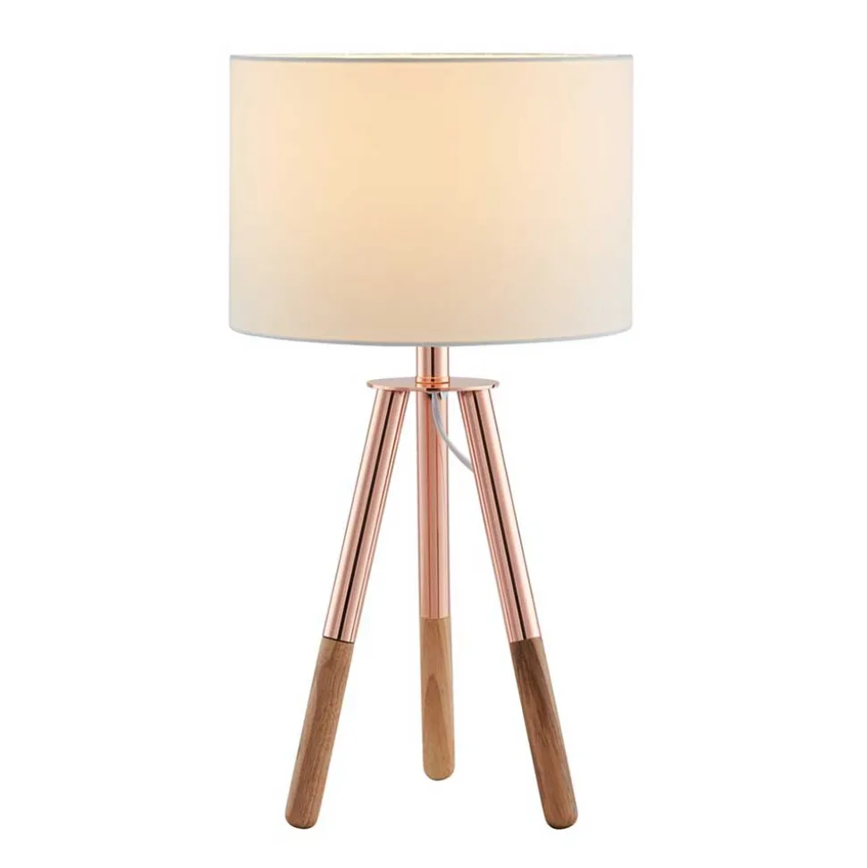 - Elegante Tischleuchte in Weiß, Kupfer und Eichefarben
