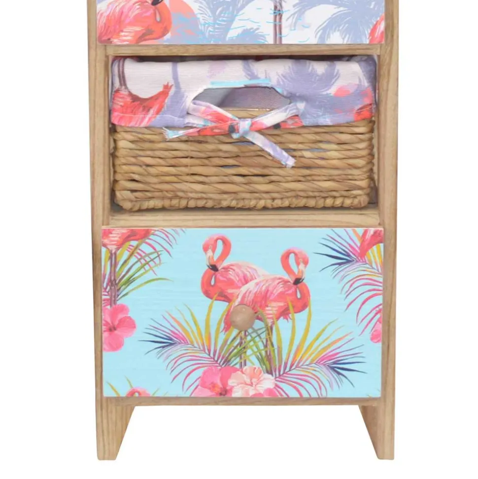 - Schubkastenfronten mit bunten Flamingo Prints gestaltet