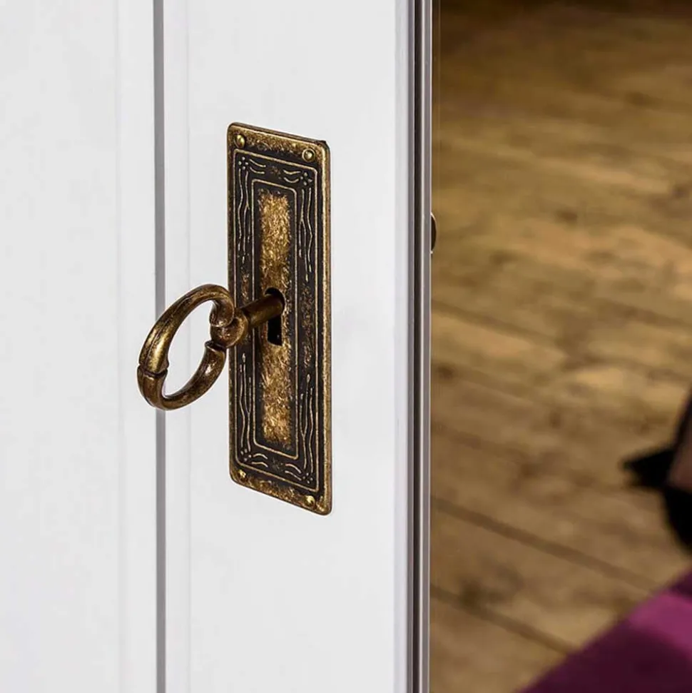 Die elegante Kassettenoptik der äußeren Türfronten und die sorgfältig gefräste Deckplatte unterstreichen die exquisite Handwerkskunst, die in diesem Möbelstück steckt. Sicher und geordnet lässt sich alles verstauen, was Ihnen wichtig ist, dank praktischer Abschließbarkeit und einer gut durchdachten Innenraumaufteilung.