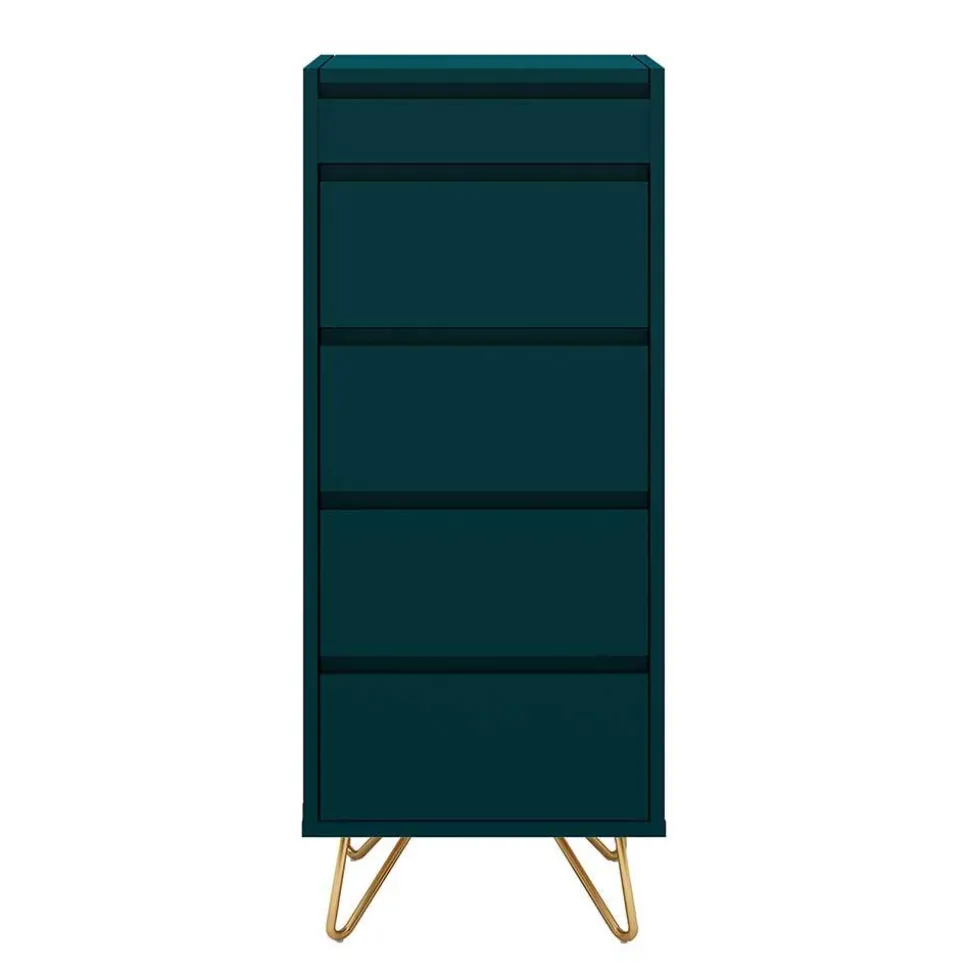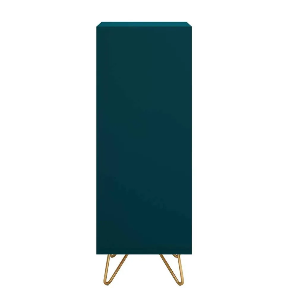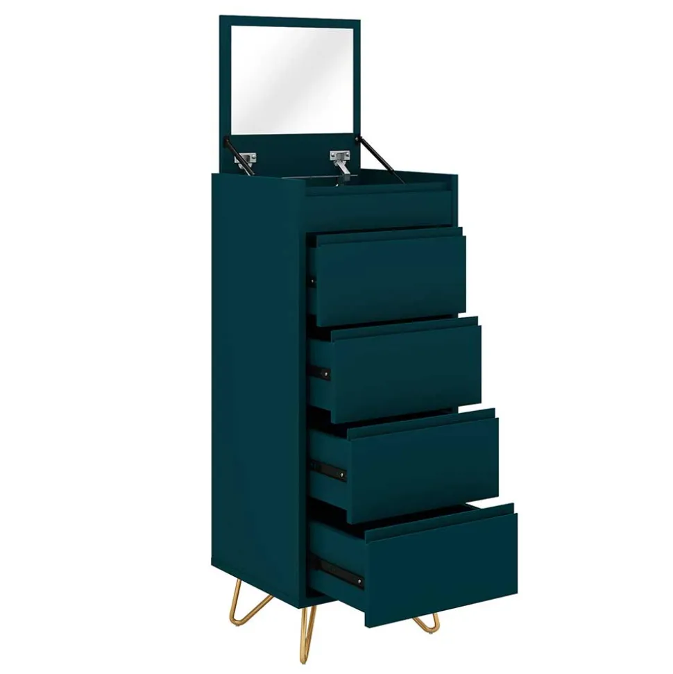Gefertigt aus hochwertigem MDF und sorgfältig lackiert in edlem Petrol, bietet diese Hochkommode eine samtig-glatte Oberfläche, die beim Darüberstreichen sofort den Unterschied spüren lässt. MDF – mitteldichte Faserplatte – überzeugt nicht nur durch seine außergewöhnliche Stabilität und Langlebigkeit, sondern auch durch seine feine, homogene Struktur. Das Ergebnis: eine makellose, ebenmäßige Oberfläche, die nicht nur aussieht wie ein Designerstück – sie fühlt sich auch genauso an. Die Lackierung verleiht dem Möbel einen dezenten Glanz, der Luxus und Zurückhaltung perfekt miteinander vereint.