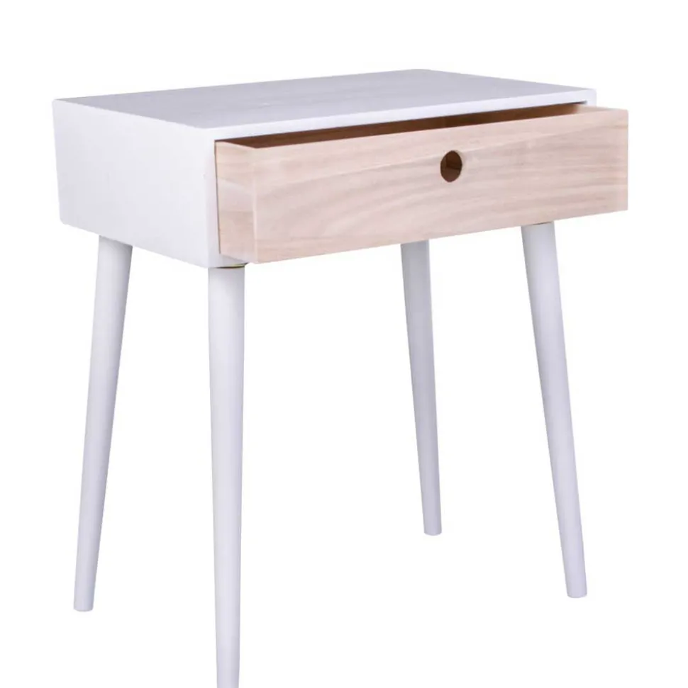 - Schicker Nachttisch in Weiß und Holz Naturfarben