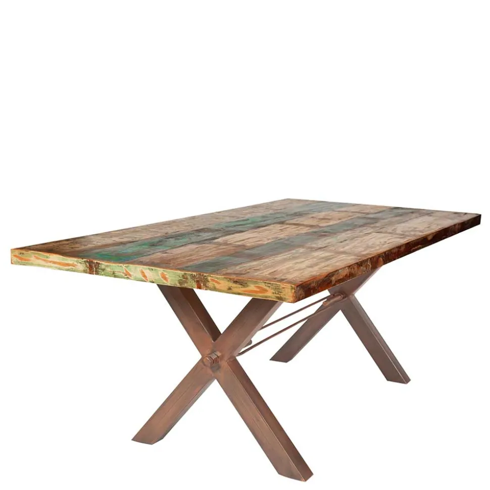 Sheesham Holz steht nicht nur für seine Robustheit und den Widerstand gegen Abnutzung, sondern auch für seine Umweltfreundlichkeit, da es aus nachhaltigen Quellen stammt. Die Kombination mit einem X-Fußgestell aus antikem, braunem Eisen fügt eine zusätzliche Dimension der Stärke und des industriellen Charmes hinzu. Die einstellbare Weite des Tisches durch ein innovatives Gewindesystem im Gestell sorgt zudem für Flexibilität in jedem Essbereich, ganz gleich ob Sie mehr Gäste erwarten oder einfach mehr Raum benötigen.