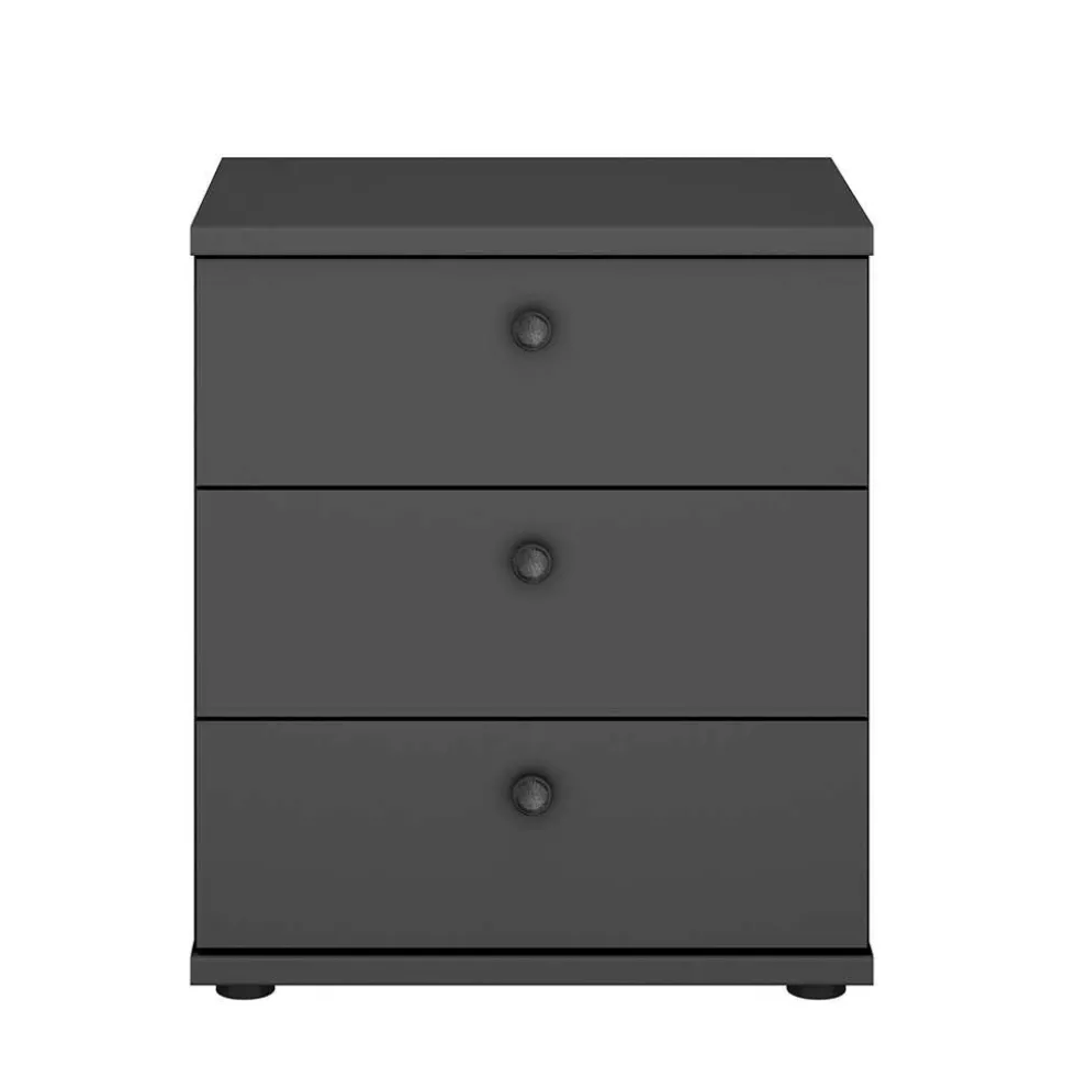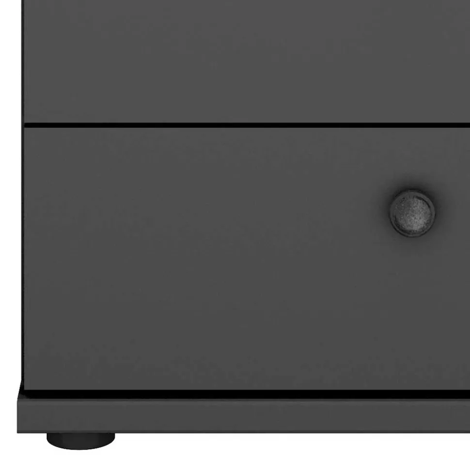 Hergestellt aus robuster Spanplatte, verspricht die Nachtkommode eine hohe Widerstandsfähigkeit und lange Lebensdauer. Die pflegeleichten, folierten Oberflächen in Dunkelgrau sind nicht nur ästhetisch ansprechend, sondern auch kinderleicht zu reinigen. Dies bedeutet, dass kleinere Verschmutzungen problemlos abgewischt werden können, und die Kommode selbst nach Jahren noch wie neu aussieht.