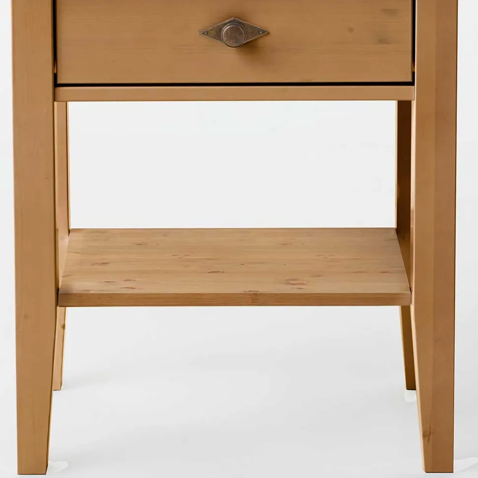 Dieses exquisite Möbelstück ist aus massiver nordischer Kiefer gefertigt, bekannt für ihre Robustheit und Langlebigkeit. Kiefernholz ist nicht nur hart und widerstandsfähig, sondern auch besonders charmant durch seine lebendige Maserung. Für Details wie den Schubkastenrahmen, -boden und die Rückwand haben wir hochwertiges Sperrholz verwendet, um Stabilität und Langlebigkeit zu garantieren.