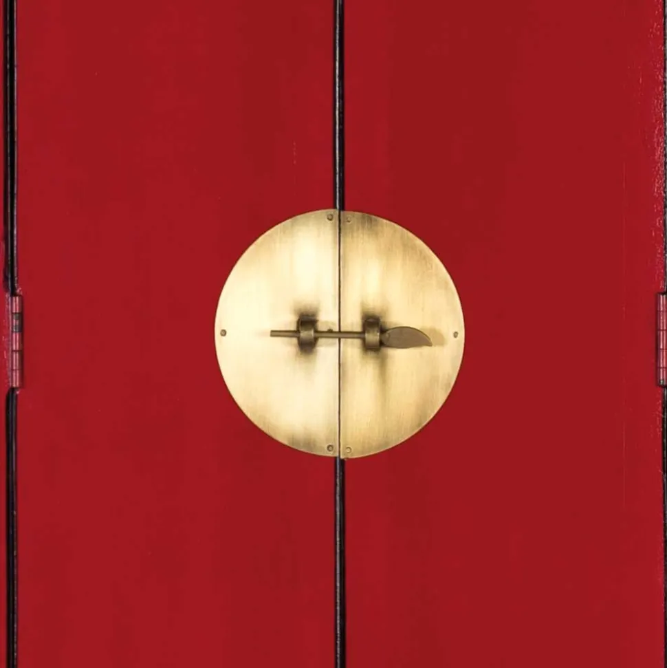 Der Massivholz Schrank „Iscian“ zieht mit seiner auffälligen Farbkombination aus Rot und Gold alle Blicke auf sich. Mit seinem asiatisch inspirierten Design bringt er eine exotische Note in Ihre Räume und wird zum stilvollen Highlight in Wohn-, Schlaf- oder Arbeitszimmer. Durch die kunstvolle Handarbeit wird jeder Schrank zu einem unverwechselbaren Unikat, das Individualität und Charakter ausstrahlt.