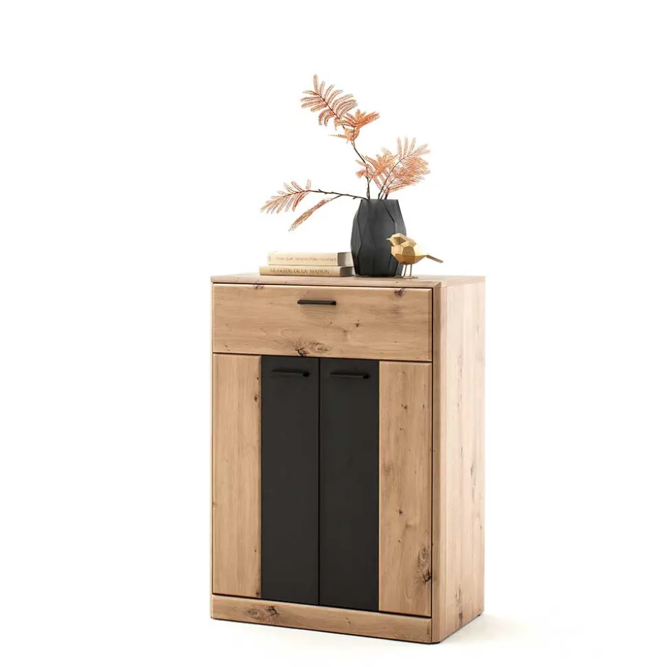 - Dekorative Kommode in Eichefarben und dunkel Grau
