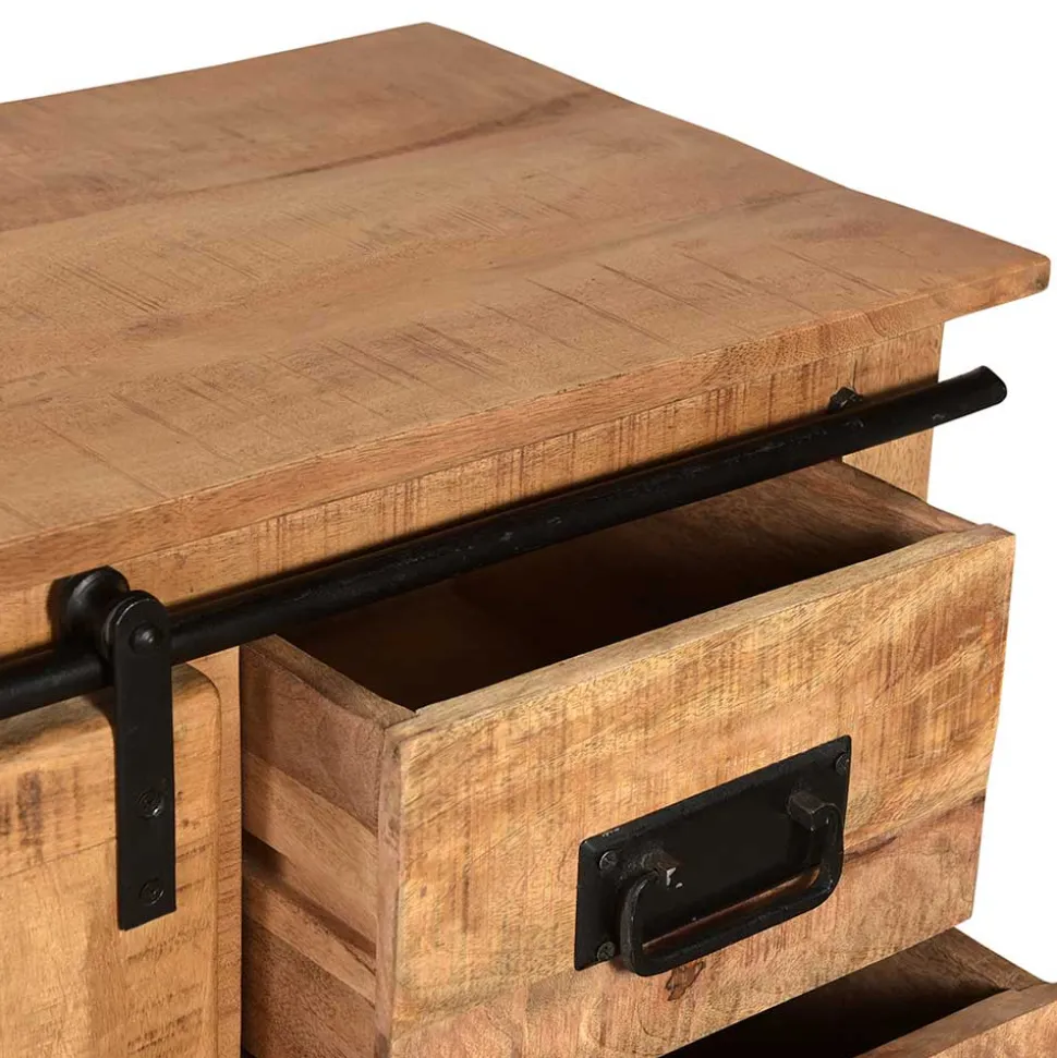 - Trendstarke Kommode in Mangoholz Naturfarben und Antikschwarz