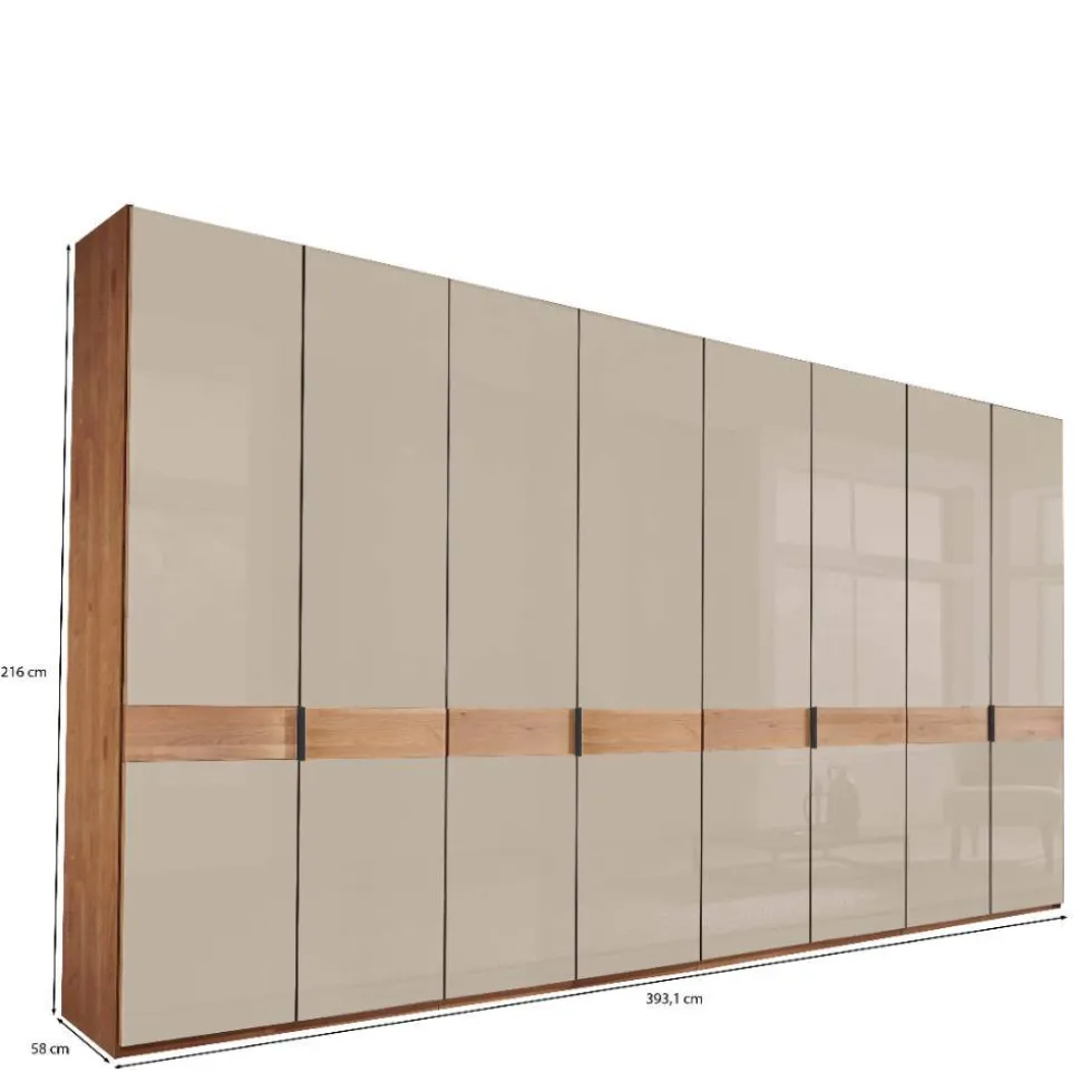 Der 8-türige XXL-Kleiderschrank „Angelina“ ist die perfekte Wahl für alle, die viel Platz benötigen und dabei auf ein elegantes, modernes Design setzen. Mit seiner imposanten Breite von 393 cm und einer Höhe von 216 cm bietet er maximale Kapazität für Kleidung, Wäsche und Accessoires – und das in einem stilvollen Look, der durch die champagnerfarbenen Glasfronten besonders hochwertig wirkt.
