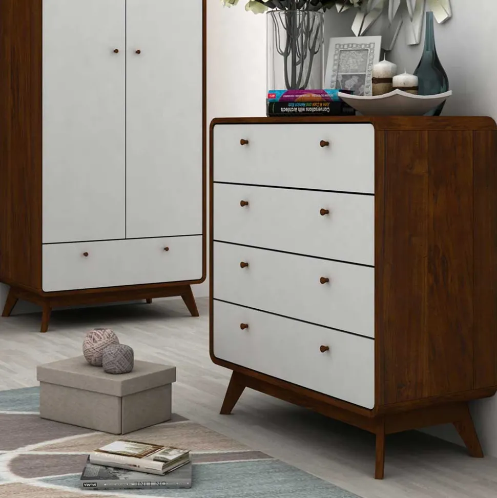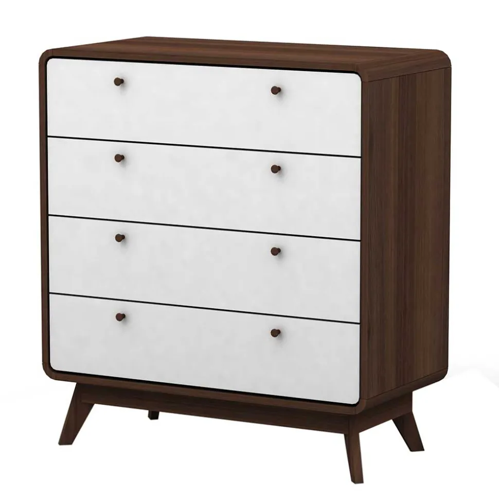 - Trendige Schubladenkommode in Weiß und Walnussbraun