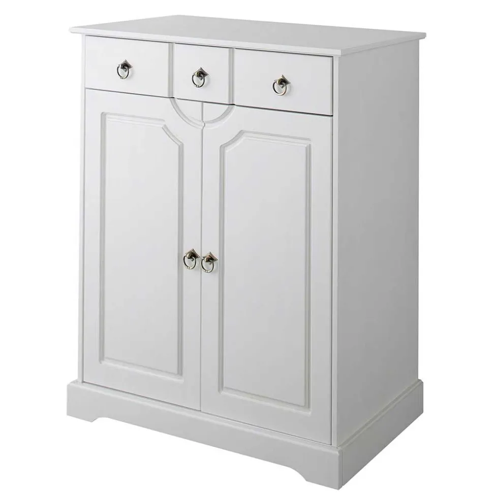 Mit dem Vertiko „Vesrav“ holen Sie sich den unverwechselbaren Charme des Landhausstils direkt in Ihr Zuhause. Landhausstil steht für Gemütlichkeit und Natürlichkeit, wodurch jeder Raum eine warme und einladende Atmosphäre erhält. Dieses exquisite Möbelstück ist komplett aus massivem Kiefernholz gefertigt, was nicht nur für Langlebigkeit und Robustheit sorgt, sondern auch das rustikale Flair eines Landhauses versprüht. Die weiß gewachsten Oberflächen unterstreichen die hochwertige Materialqualität und sorgen für eine schicke und pflegeleichte Finish.