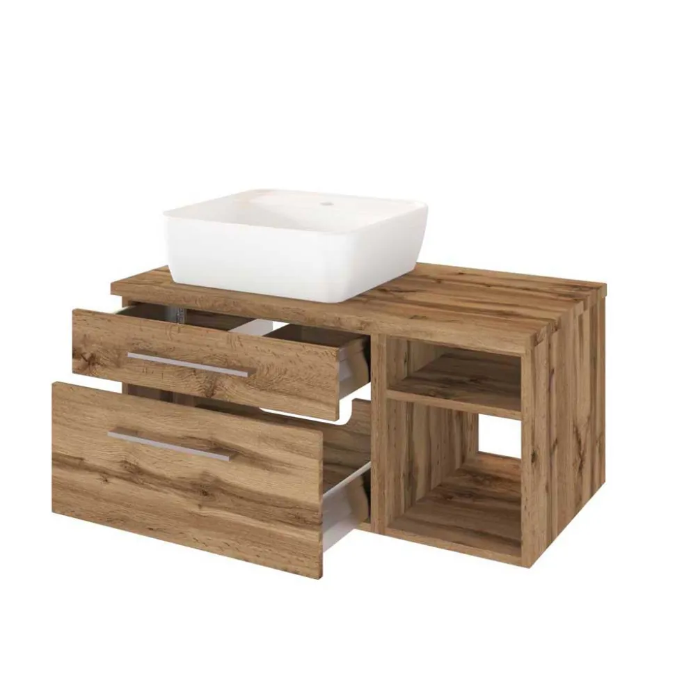 - Ansprechender Unterbeckenschrank in Wildeichefarben