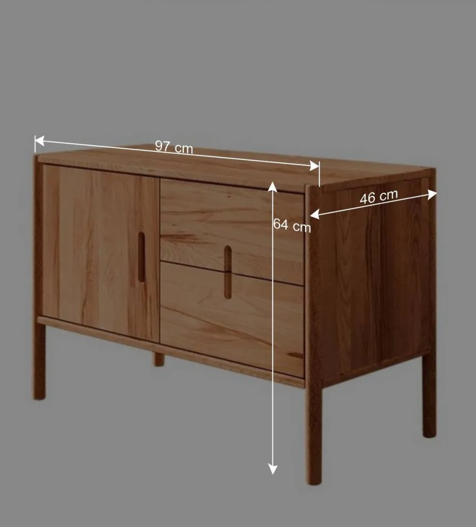 Mit der Kommode „Indrya“ holen Sie sich ein Möbelstück ins Haus, das modernes Design und natürliche Eleganz mühelos vereint. „Indrya“ ist mehr als nur ein Aufbewahrungsmöbel, es ist ein Statement von Geschmack und Stil. Auf einer Breite von 97 cm, einer Höhe von 64 cm und einer Tiefe von 46 cm bietet diese Kommode nicht nur ausreichend Platz, sondern setzt auch ästhetische Akzente in Ihrem Wohnraum.