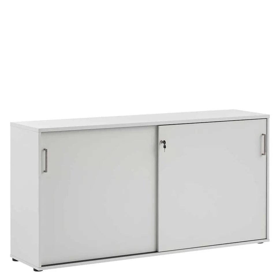 Zwei leichtgängige Schiebetüren sorgen nicht nur für ein ruhiges, platzsparendes Öffnen, sondern auch für klare Linien ohne störende Türflügel im Raum. Hinter den Türen erwartet Sie ein durchdachter Innenraum: Ein Einlegeboden teilt das Innere in zwei großzügige Fächer mit Ordnerhöhe – ideal, um Unterlagen, Ordner und Arbeitsmaterialien übersichtlich zu verstauen. Für zusätzliche Sicherheit ist der Schrank abschließbar – vertrauliche Dokumente sind damit bestens geschützt.