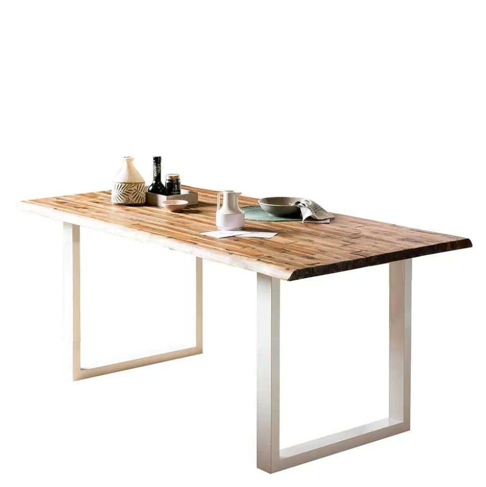 - Hervorragender Esstisch in Akaziefarben und Weiß