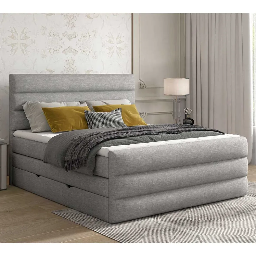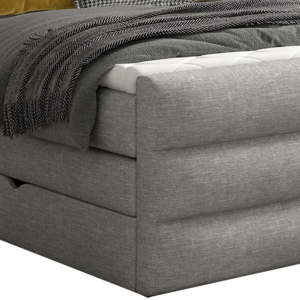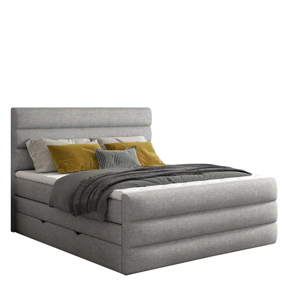Mit dem Boxspringbett „Padiona“ holen Sie sich echte Hotelbett-Qualität nach Hause – und das in kompletter Ausstattung inklusive Stauraum. Die geradlinige Formgebung und der graue Webstoff verleihen dem Bett eine moderne, urbane Ausstrahlung, die sich problemlos in verschiedenste Schlafzimmerstile integrieren lässt. Ob zurückhaltend puristisch oder charmant kombiniert: „Padiona“ setzt klare Akzente ohne sich in den Vordergrund zu drängen.