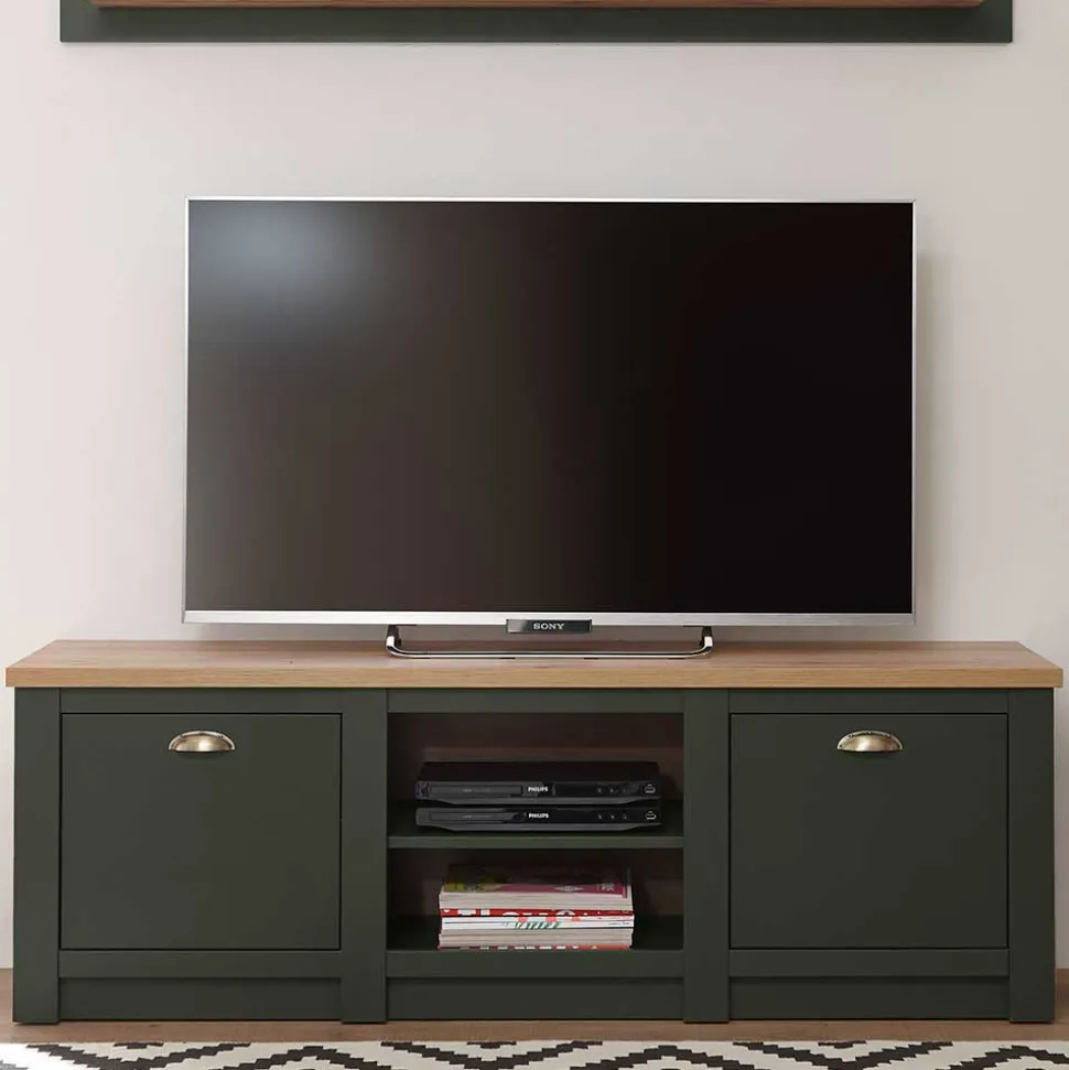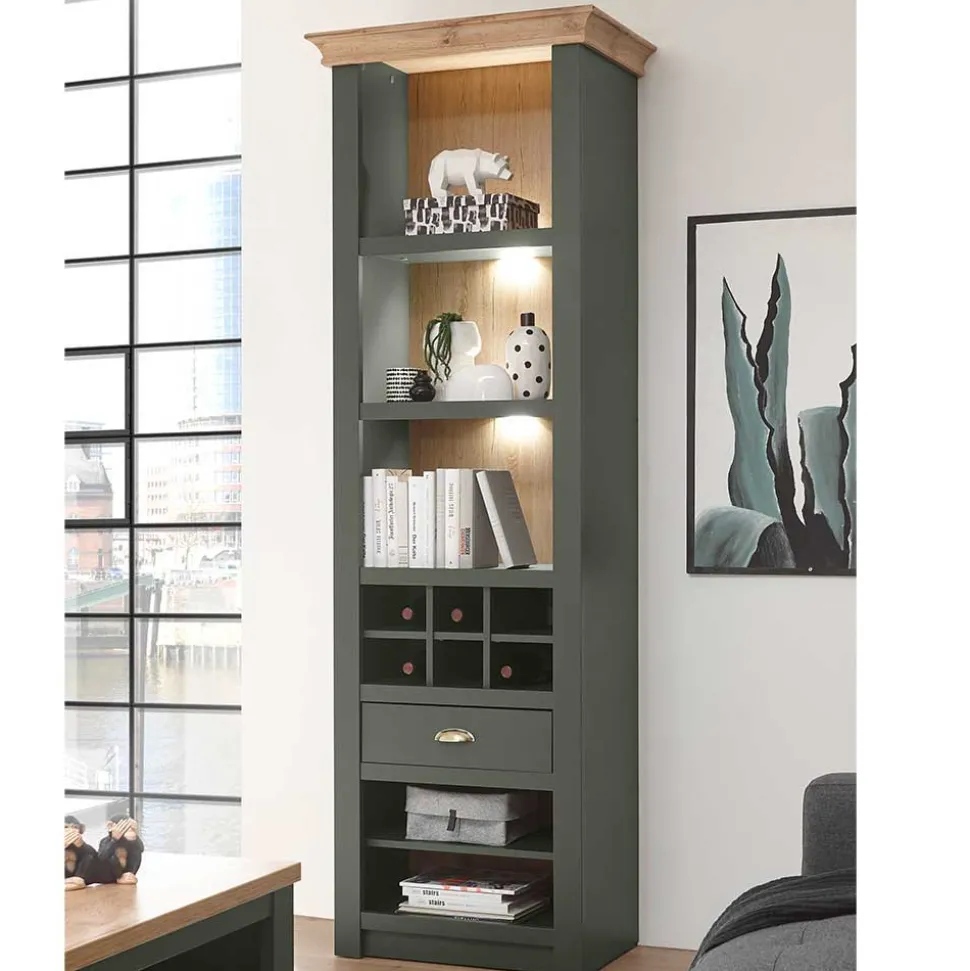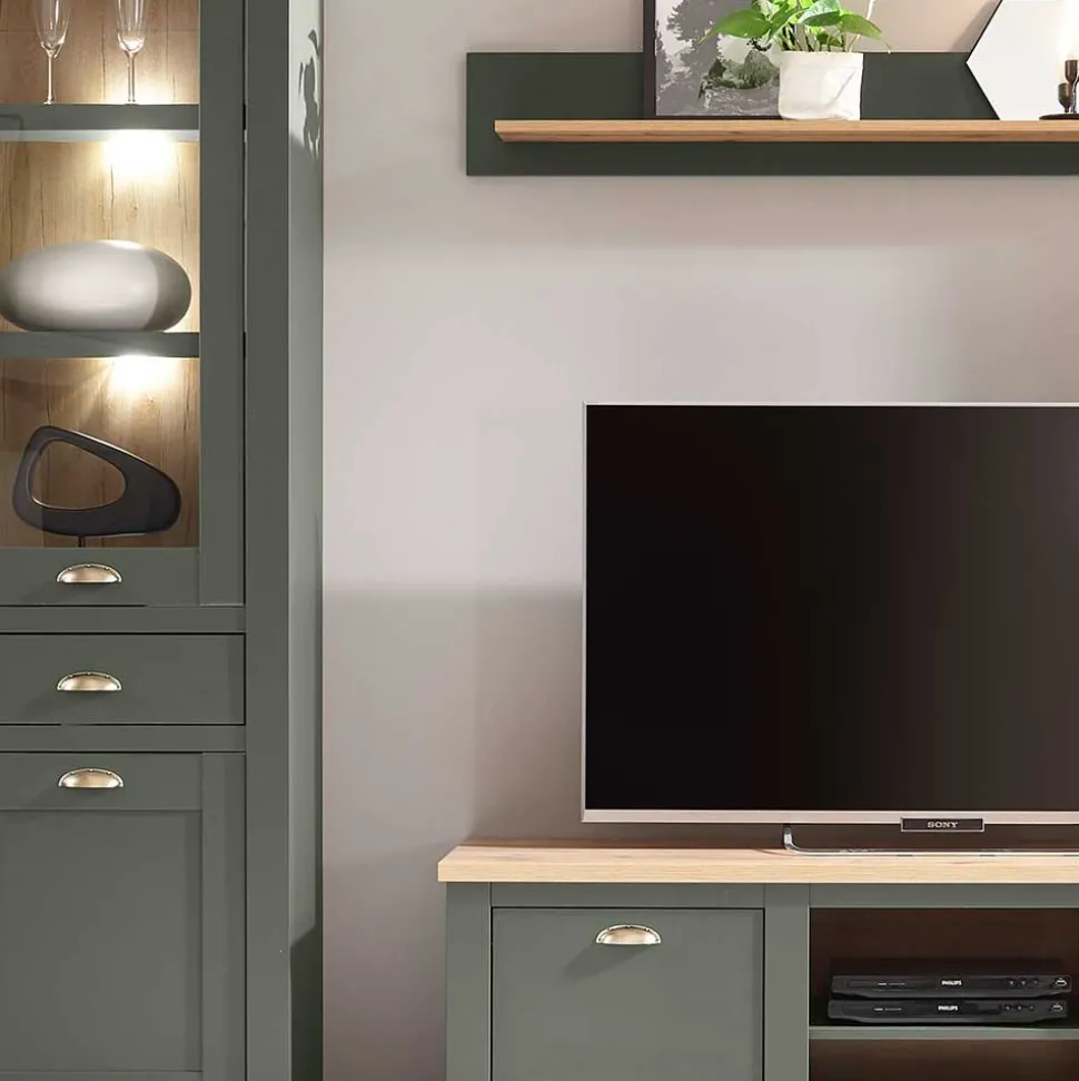 - Fabelhafte Wohnwand in Graugrün und Wildeichefarben