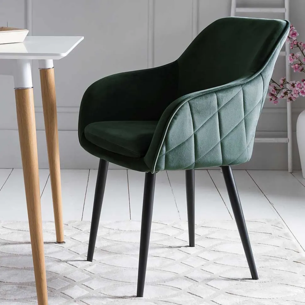 Ausgewählt für seine luxuriöse Qualität und seinen unvergleichlichen Komfort, ist der Polsterstuhl „Abacho“ mit einem samtweichen Bezug aus 100 % Polyester gefertigt. Samt, bekannt für seine dichte, weiche Oberfläche, bietet nicht nur einen herrlichen Sitzkomfort, sondern ist auch äußerst strapazierfähig. Das elegante Dunkelgrün des Bezugs verleiht jedem Raum einen Hauch von Noblesse und macht den Stuhl zum visuellen Mittelpunkt. Zusammen mit dem vierfüßigen Gestell aus schwarz pulverbeschichtetem Metall steht „Abacho“ für Stabilität und Langlebigkeit, wobei die Stellschrauben jegliche Bodenunebenheiten ausgleichen.