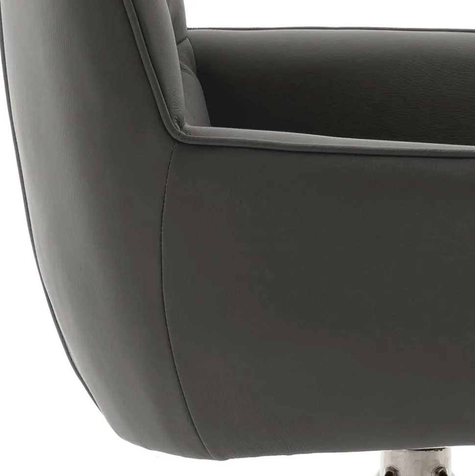 Dieser exklusive Stuhl ist aus echtem Rindsleder und robustem Metall gefertigt. Die besonders strapazierfähigen und pflegeleichten Oberflächen sind perfekt für den täglichen Gebrauch geeignet und garantieren eine lange Lebensdauer. Das robuste, anthrazitfarbene Rindsleder verleiht dem Stuhl nicht nur eine edle Optik, sondern überzeugt auch durch seine atmungsaktiven und temperaturausgleichenden Eigenschaften. Leder ist zudem besonders widerstandsfähig gegen Abnutzung und leicht zu reinigen.