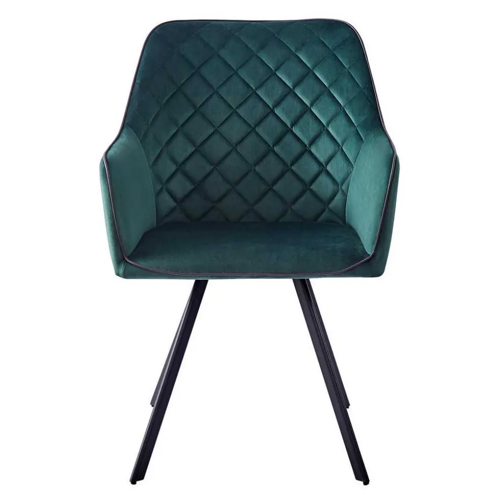 Der Stuhl begeistert nicht nur durch sein ansprechendes Design, sondern auch durch seine sorgfältige Materialwahl. Der edle Samtbezug aus 100 % Polyester sorgt für eine angenehm weiche Haptik, während die aufwendige Rautensteppung und der schwarze Keder dem Stuhl eine exklusive Note verleihen. Dank der strapazierfähigen und pflegeleichten Oberflächen bleibt das Möbelstück auch bei häufiger Nutzung lange schön. Die komfortable Schaumstoffpolsterung macht das Sitzen zu einem echten Vergnügen.