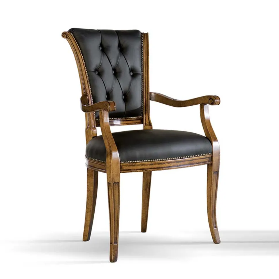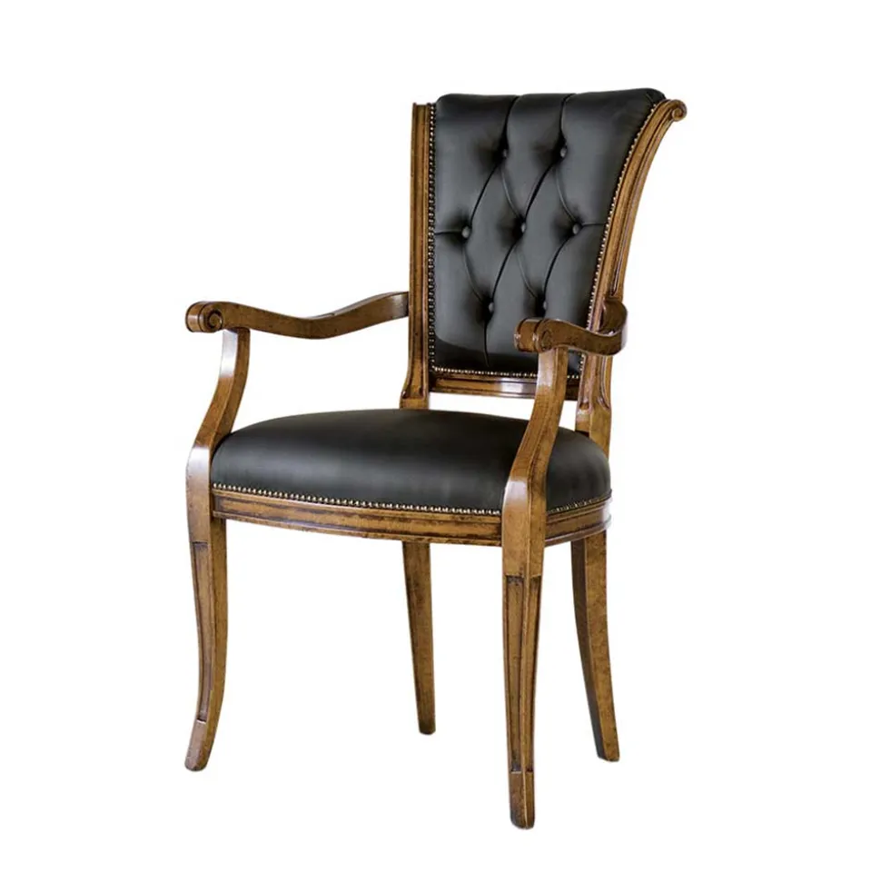 Lassen Sie sich vom Armlehnenstuhl „Naresh“ begeistern, der mit seiner prägnanten italienischen Designästhetik nicht nur Ihr Ambiente bereichert, sondern auch einen Hauch von Luxus in Ihr Zuhause bringt. Entstanden in der Tradition renommierter italienischer Möbeldesigner, zeichnet sich dieses Möbelstück durch klare Linien und eine elegante Silhouette aus, die durch die geschwungenen Holz-Armlehnen und das leicht geschwungene Gestell aus massivem Buchenholz perfekt ergänzt wird. Die braun lackierten Holzoberflächen unterstreichen die warme, einladende Ausstrahlung und machen den Stuhl zu einem absoluten Eyecatcher in jedem Raum.