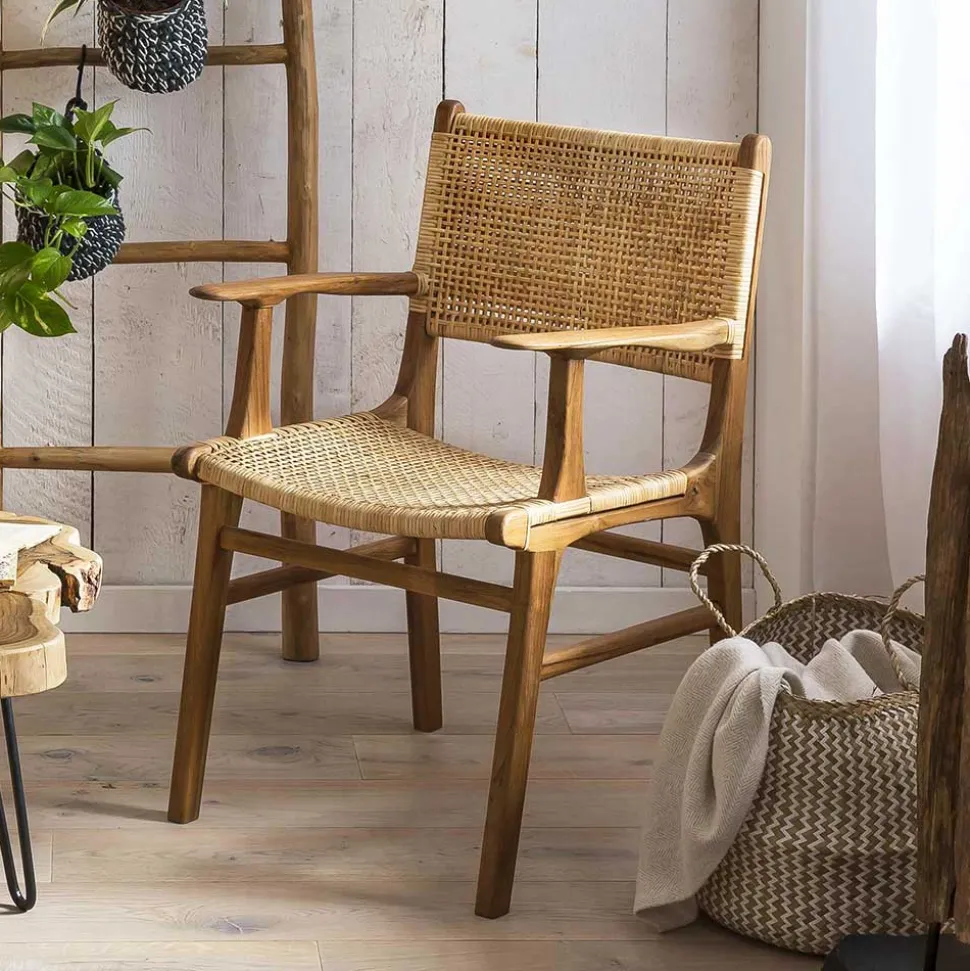 Nicht nur das Material, auch die Verarbeitung spricht für sich: Sitz- und Rückenfläche sind sorgfältig von Hand mit Rattan beflochten. Rattan ist nicht nur leicht und elastisch, sondern auch besonders atmungsaktiv, was Ihnen auch an warmen Tagen ein angenehmes Sitzerlebnis garantiert. Die Flechtstruktur bietet nicht nur Komfort, sondern auch eine visuelle Leichtigkeit, die in jedem Wohnbereich für eine gemütliche Atmosphäre sorgt.