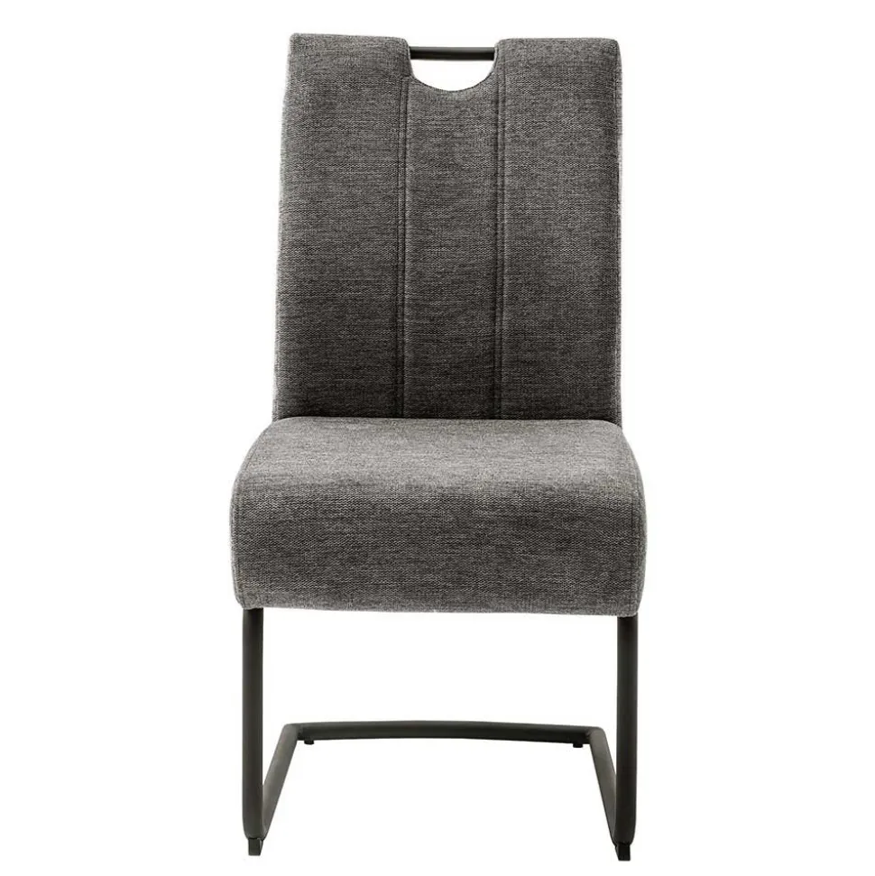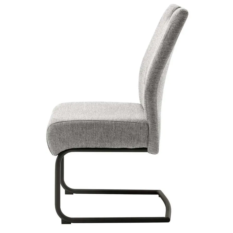 Die Schwingstühle mit ihrem Rundrohrgestell aus mattschwarz lackiertem Metall vereinen Komfort und Stabilität. Ihre hohen Rückenlehnen, veredelt durch dekorative Nähte, sorgen nicht nur für eine elegante Optik, sondern bieten auch optimalen Halt.