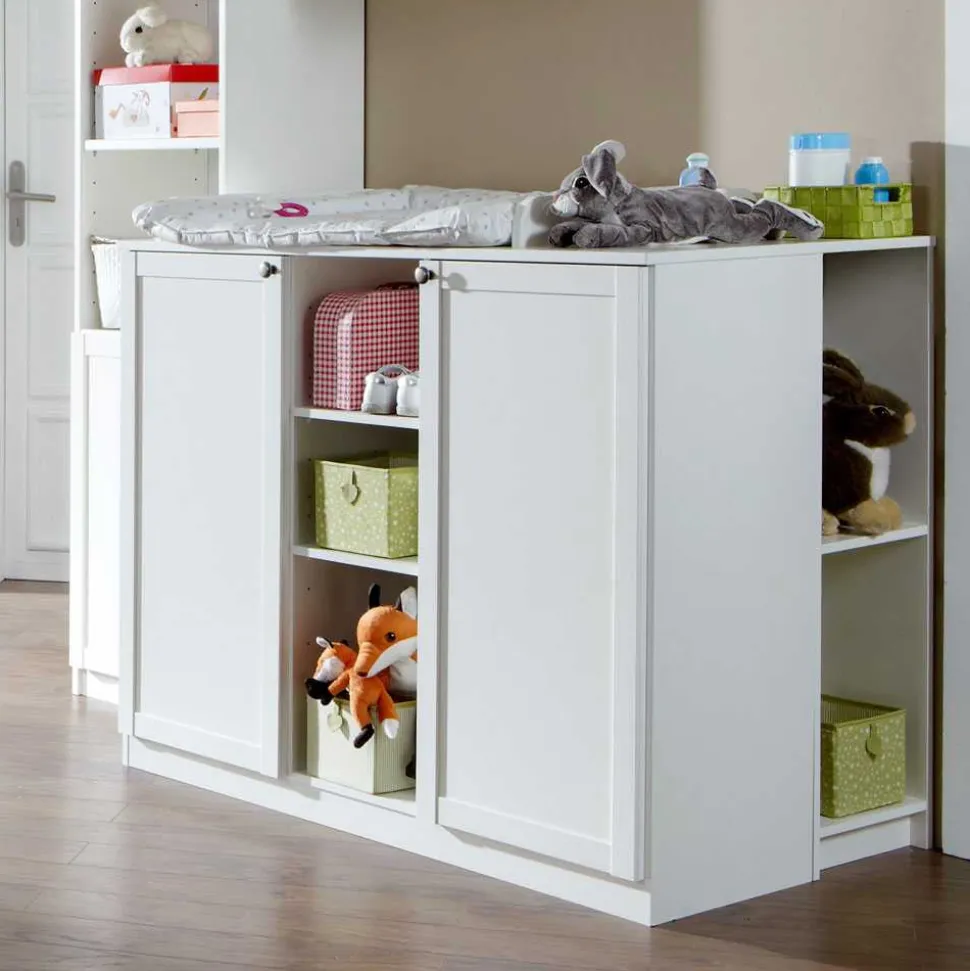 Weiße, folierte Oberflächen sorgen nicht nur für die moderne und frische Optik, sondern machen das Möbelstück besonders pflegeleicht. Kleine Missgeschicke lassen sich mühelos abwischen – ideal für den Familienalltag. Dank der hochwertigen Folierung zeigt sich die Oberfläche widerstandsfähig gegen Feuchtigkeit und überzeugt mit hoher Kratzfestigkeit. Die rund gearbeiteten Korpuskanten ergänzen das sichere und kindgerechte Design zusätzlich.