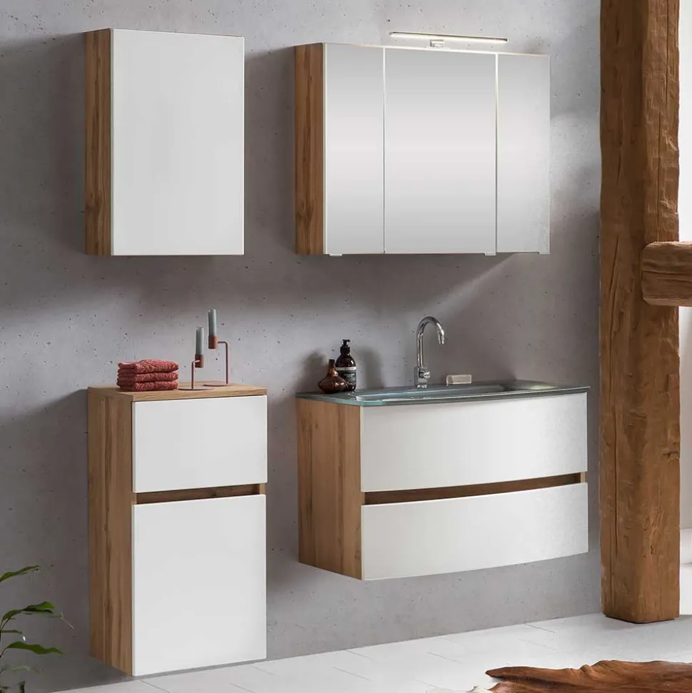 - Vorteilhafte Badmöbel in Weiß und Wildeichefarben