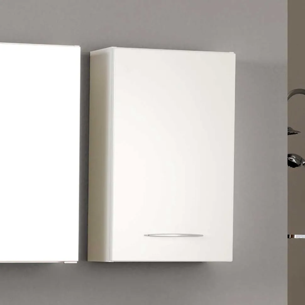 Der Hängeschrank zeigt sich in elegantem Weiß mit einer hochglänzenden Front, die für einen besonders edlen und gleichzeitig zeitlosen Look sorgt. Die glänzende Oberfläche reflektiert das Licht und lässt selbst kleinere Bäder großzügiger und heller wirken. Der schlichte Metallgriff unterstreicht die klare Linienführung und sorgt für ein minimalistisches Finish – ein echtes Statement für Liebhaber moderner Wohnkultur.