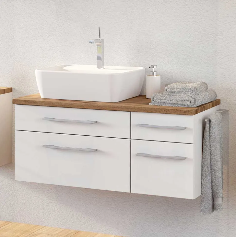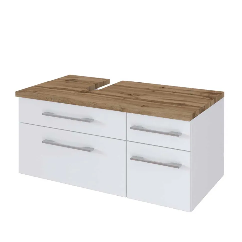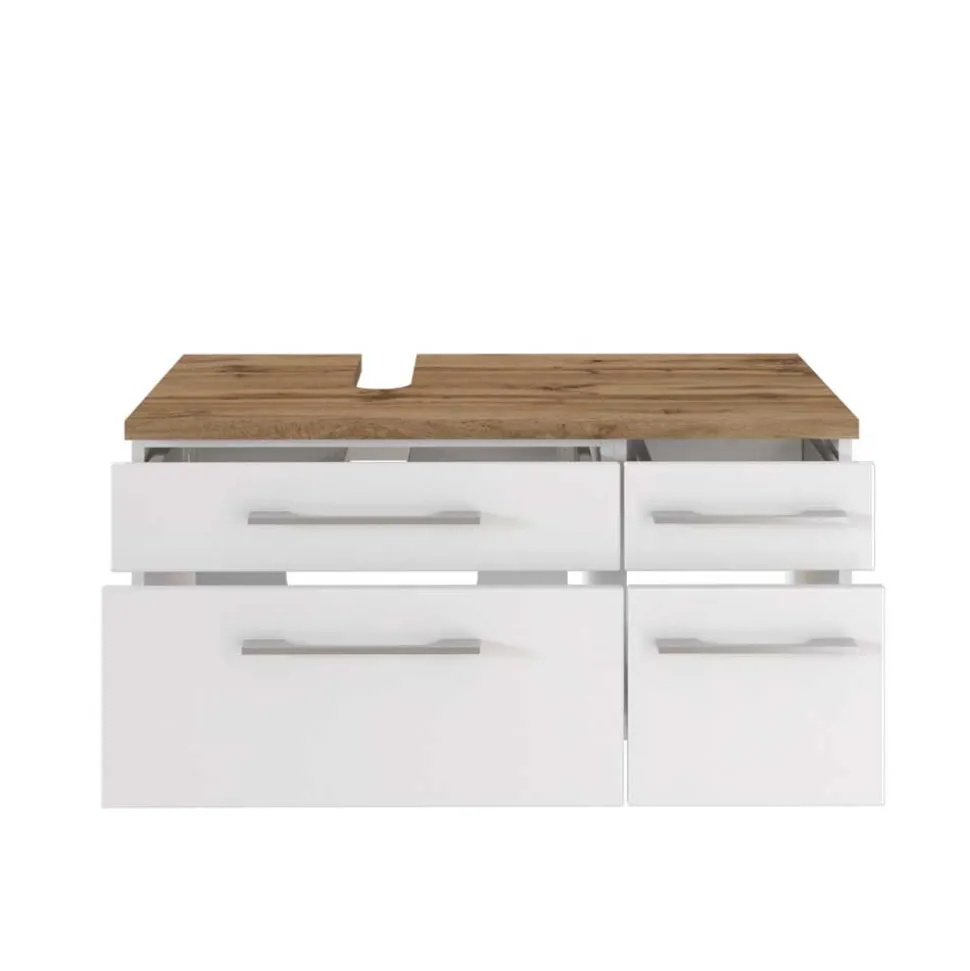 - Exquisiter Bad Unterbeckenschrank in Weiß und Wildeichefarben