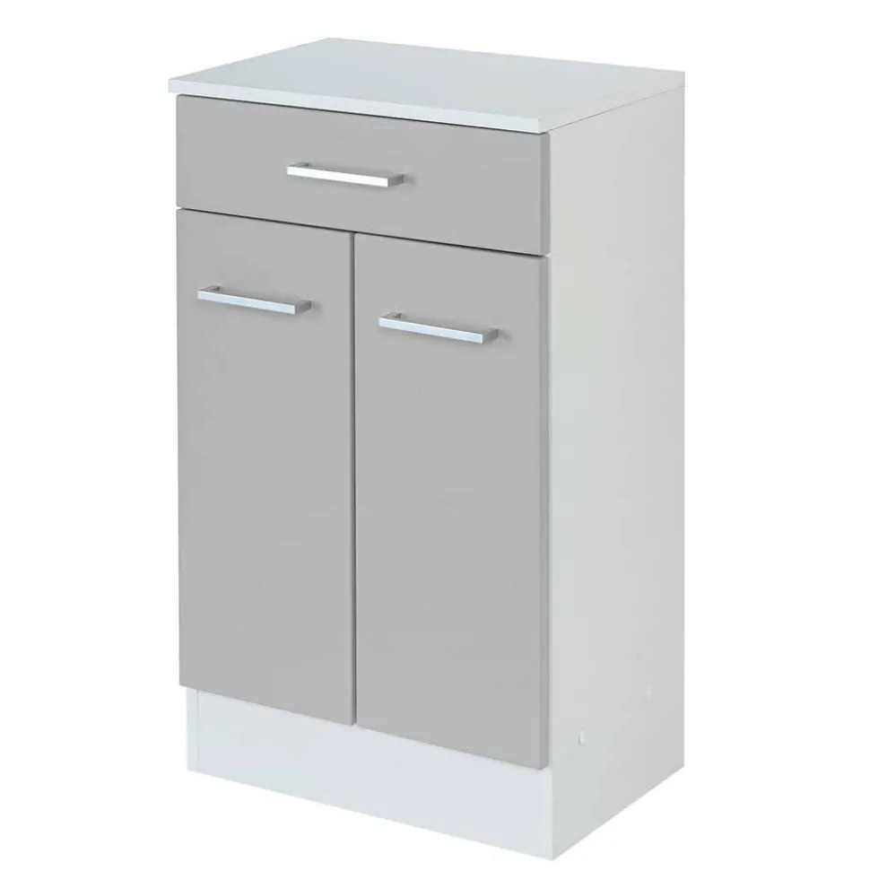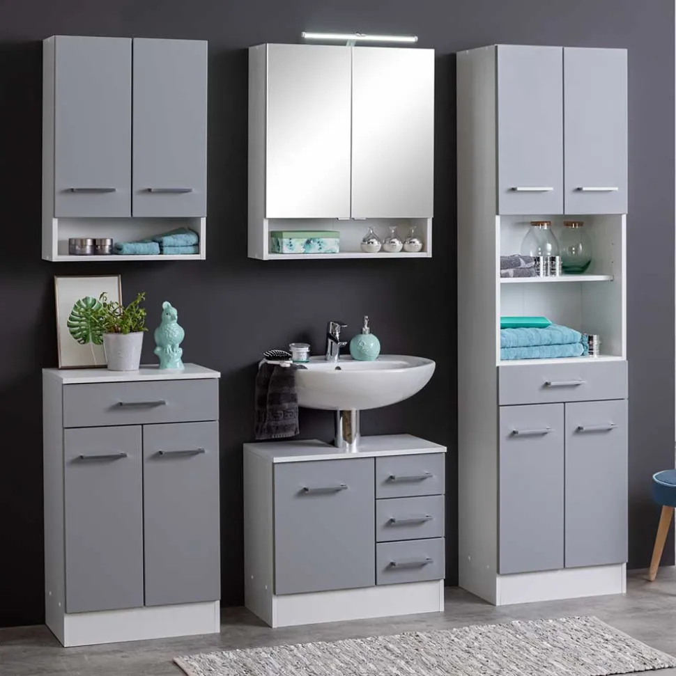 Modernes Design bedeutet hier: harmonische Farbkontraste, klare Linien und eine ästhetische Funktionalität, die sich nahtlos in verschiedenste Einrichtungsstile einfügt. Die Kombination aus dezentem Hellgrau in der Front und strahlendem Weiß am Korpus verleiht den Möbelstücken eine edle, gleichzeitig frische Wirkung – ideal für ein Bad mit Stil.