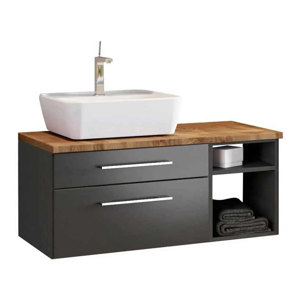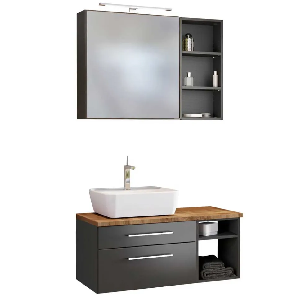- Attraktives Badmöbel Set in dunkel Grau und Wildeichefarben