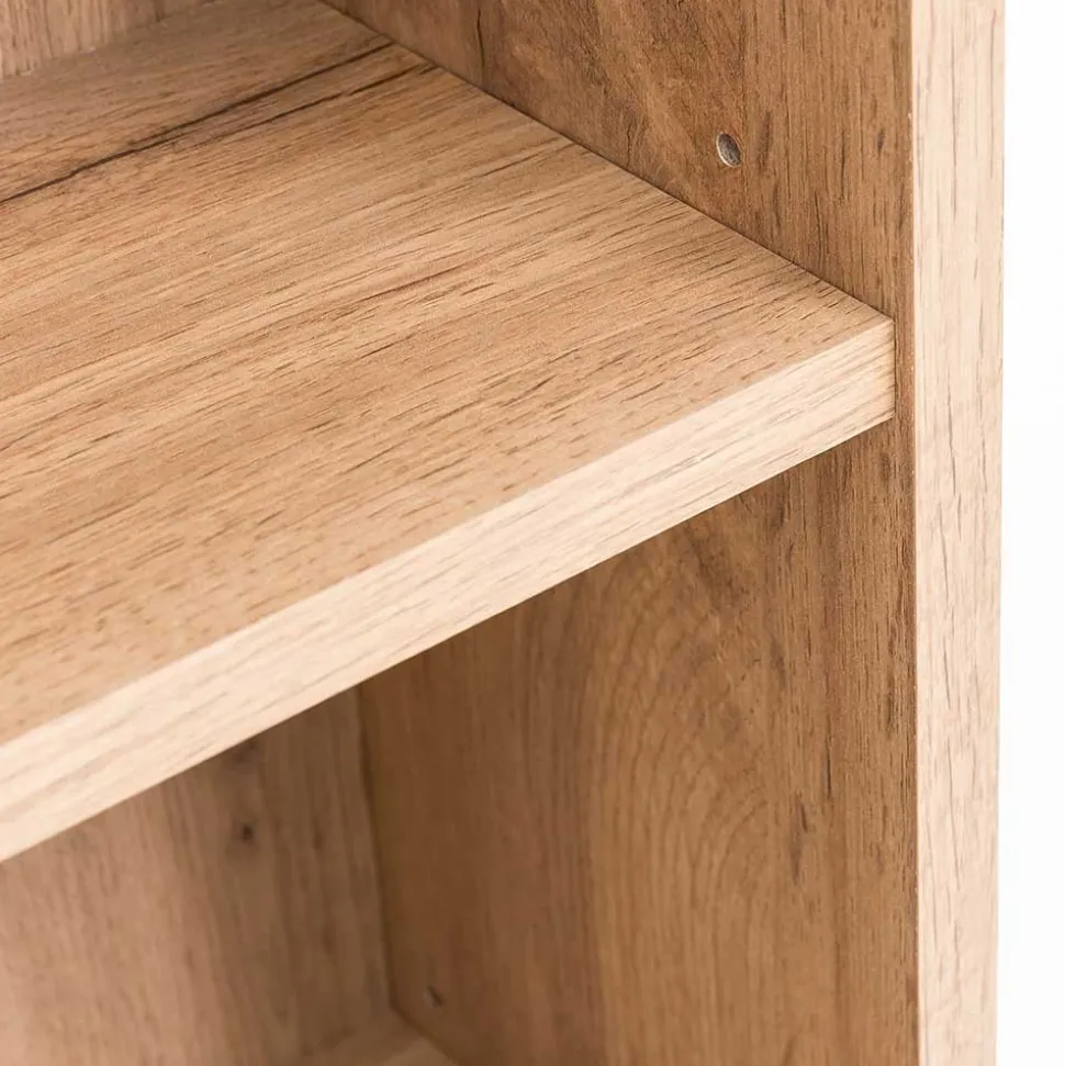 Das Bad Regal Tofias besteht aus strapazierfähiger Spanplatte mit einer Melaminbeschichtung in authentischer Wildeiche Holzoptik Touchwood. Mit drei Fächern und zwei verstellbaren Einlegeböden bietet es ausreichend Stauraum für Ihre Badezimmerutensilien und Accessoires.