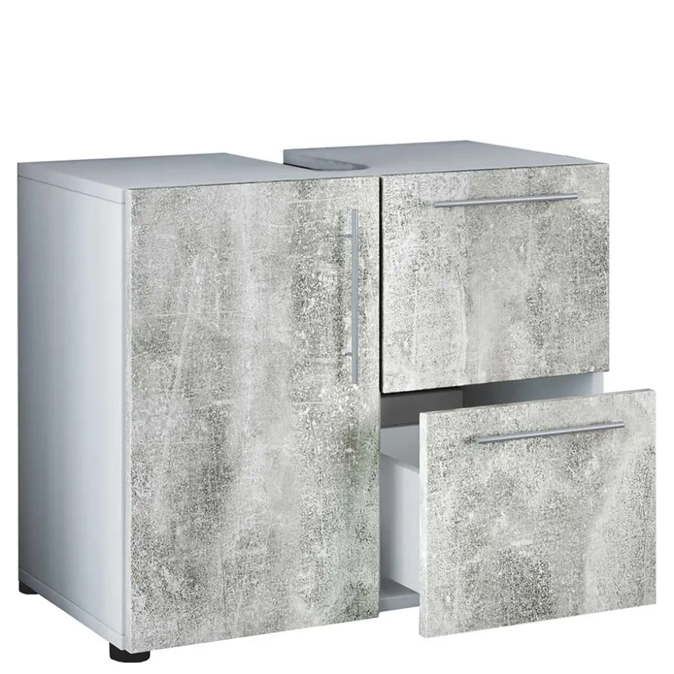 - Stylischer Unterbeckenschrank in Weiß und Betongrau